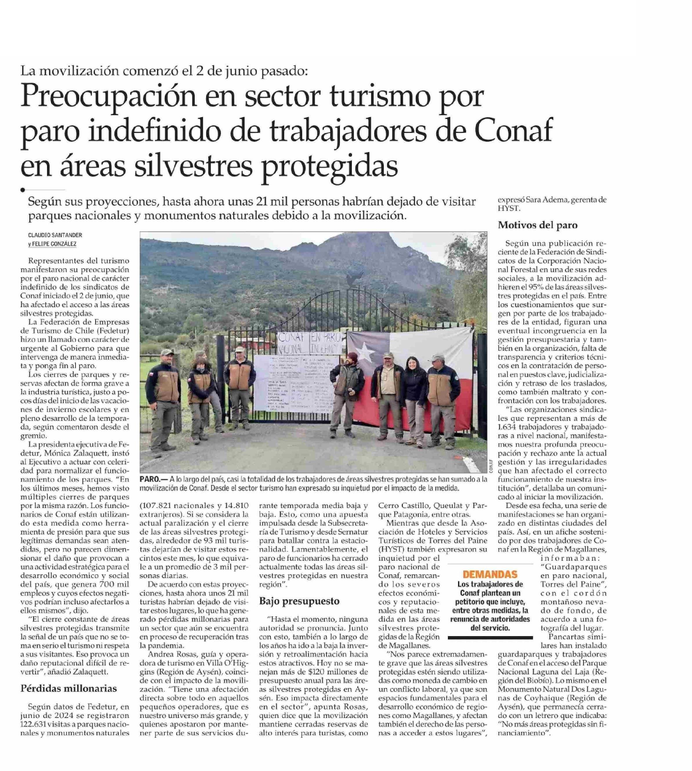 Preocupación en sector turismo por paro indefinido de trabajadores de Conaf en áreas silvestres protegidas