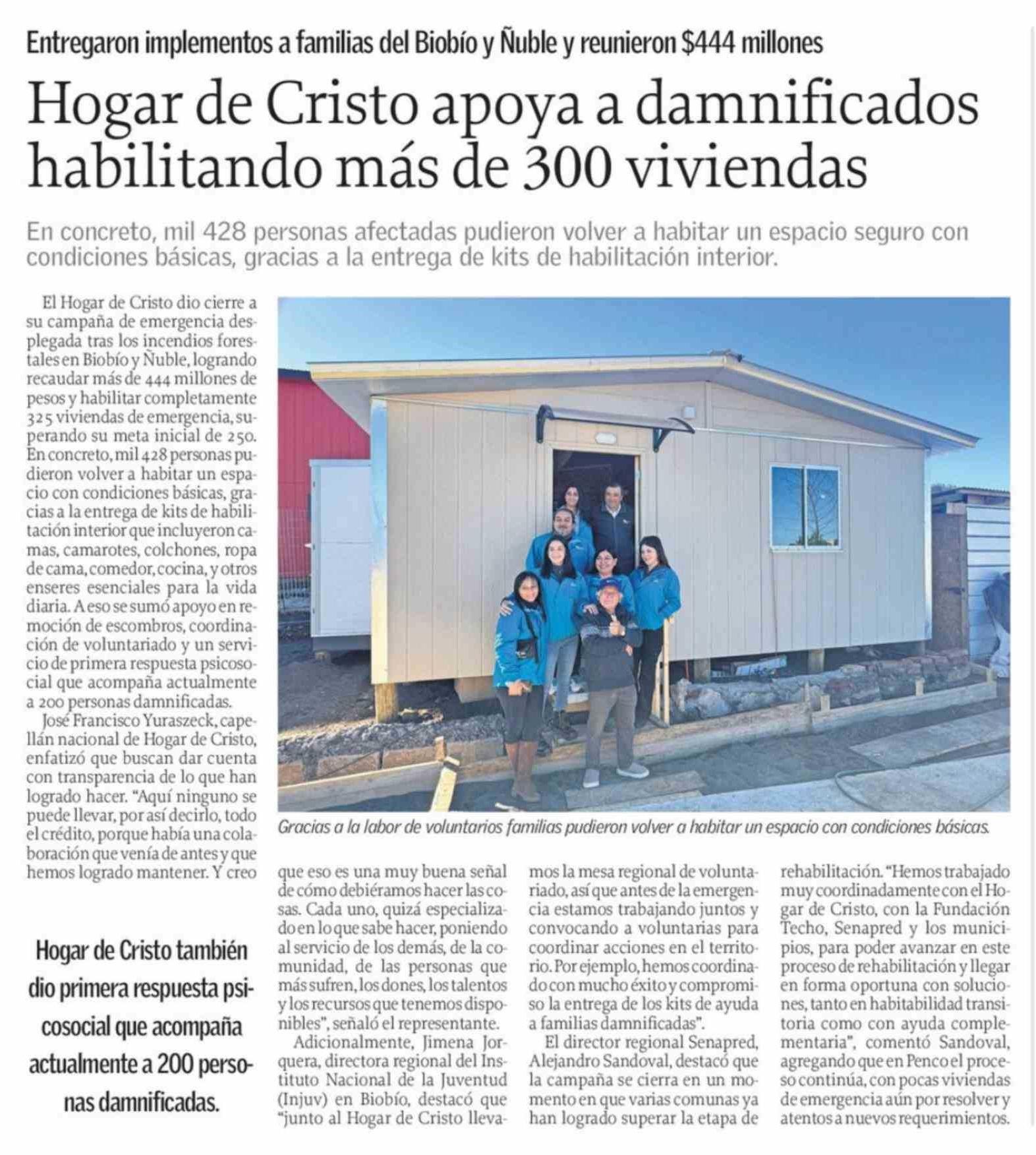 Hogar de Cristo apoya a damnificados habilitando más de 300 viviendas