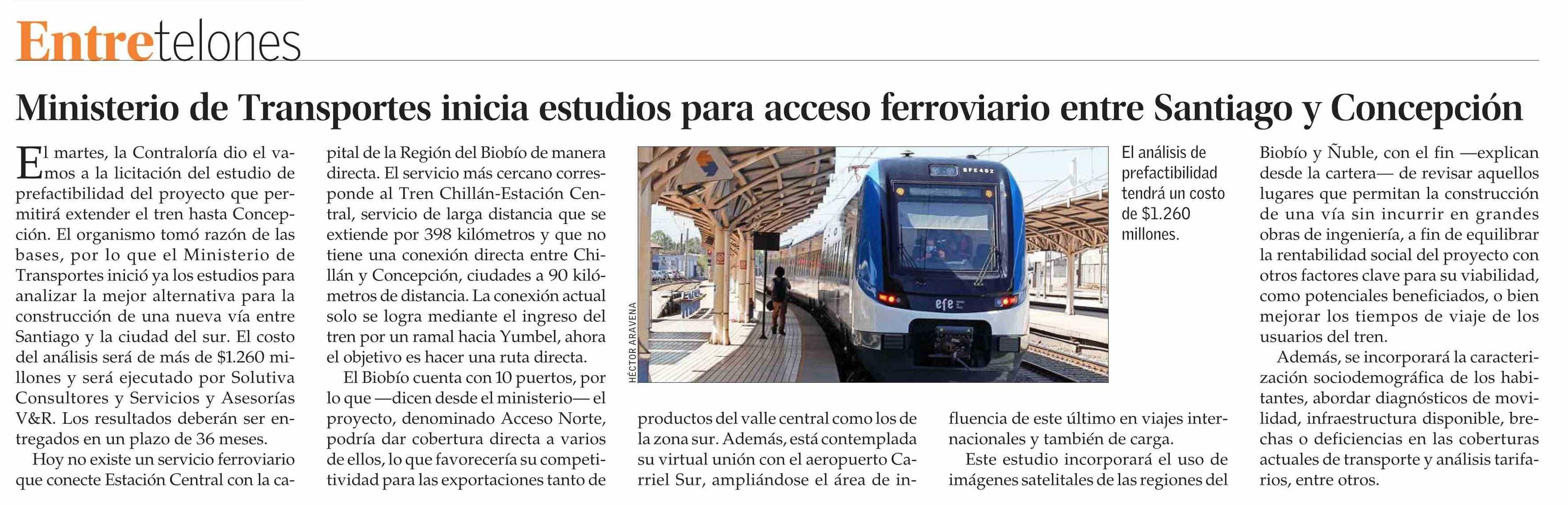 Ministerio de Transportes inicia estudios para acceso ferroviario entre Santiago y Concepción