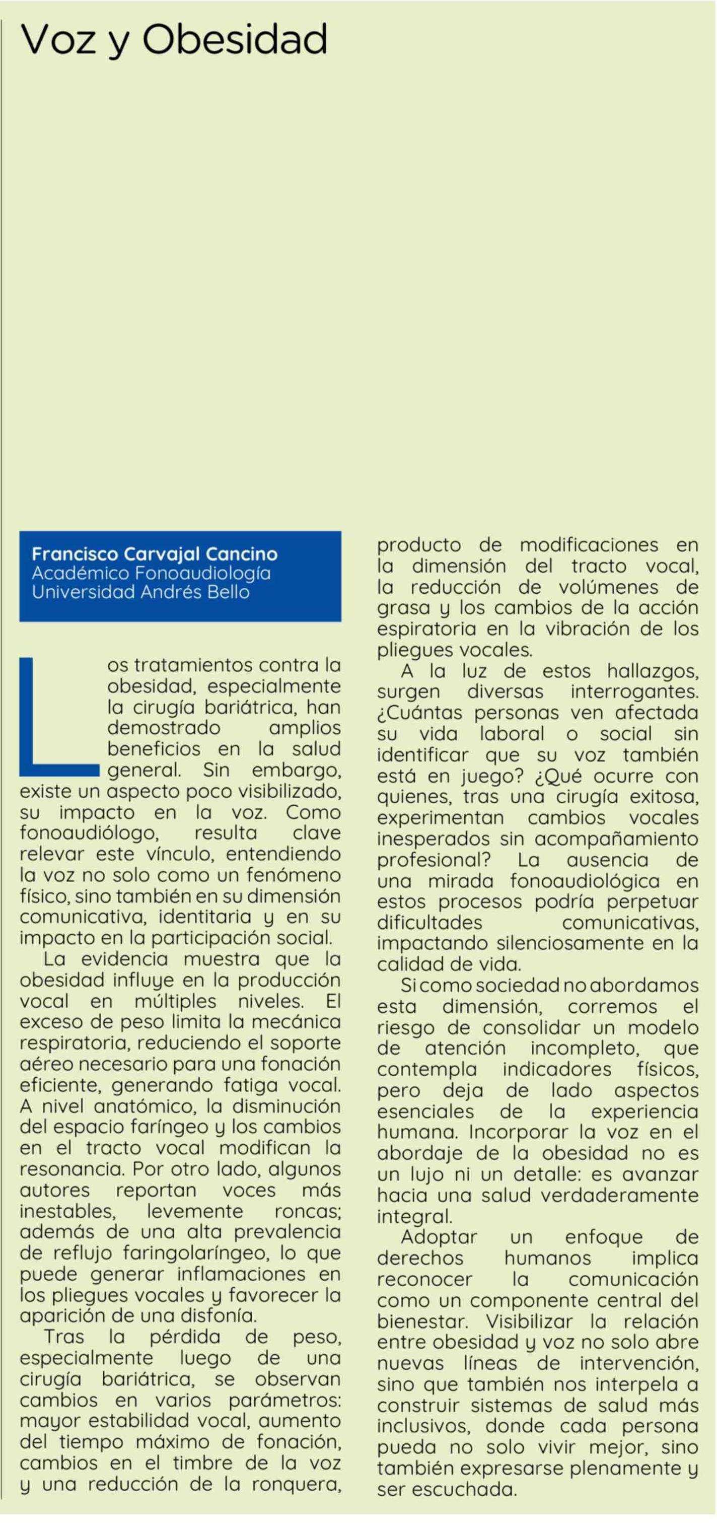 Columnas de Opinión: Voz y Obesidad