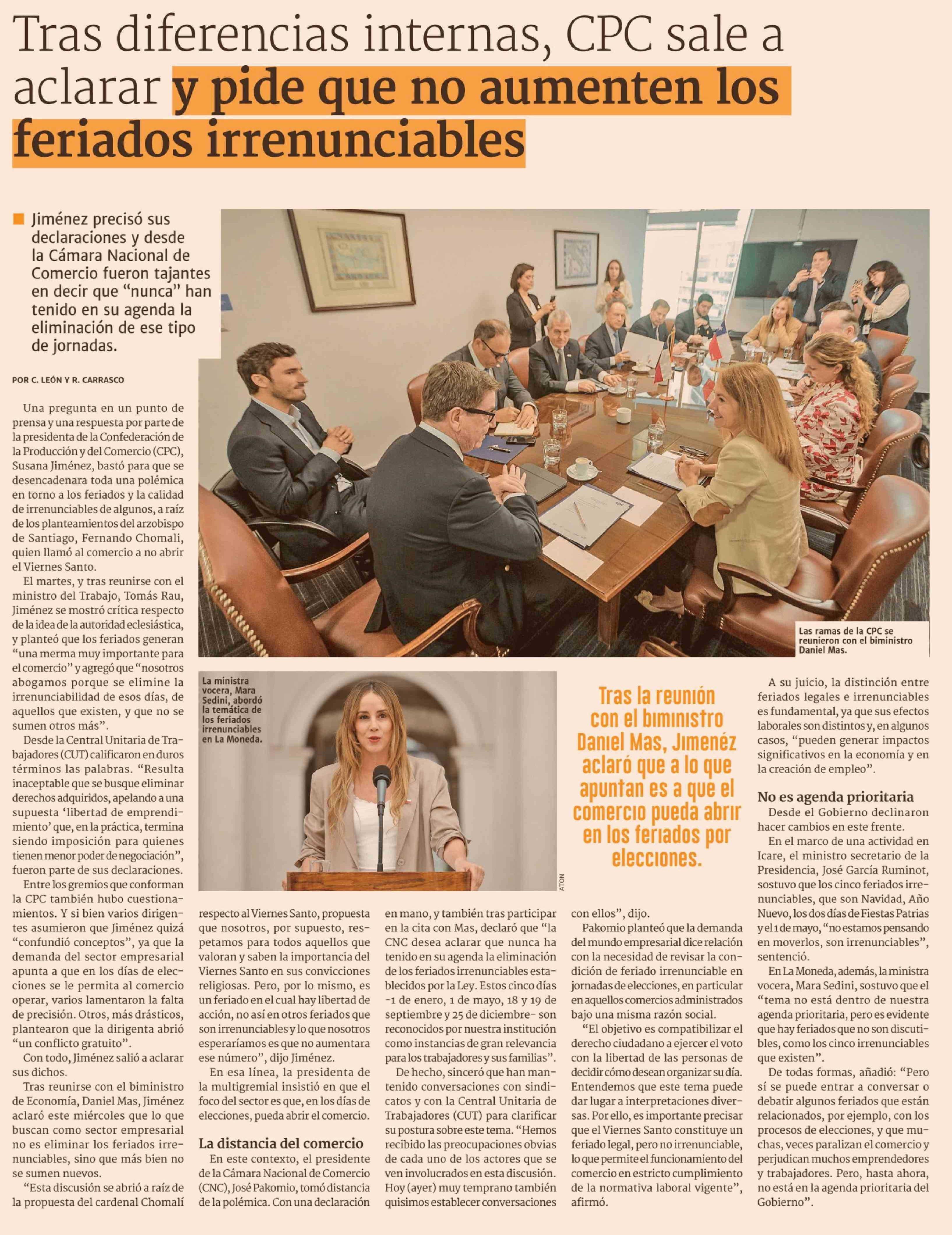 Tras diferencias internas, CPC sale a aclarar y pide que no aumenten los feriados irrenunciables