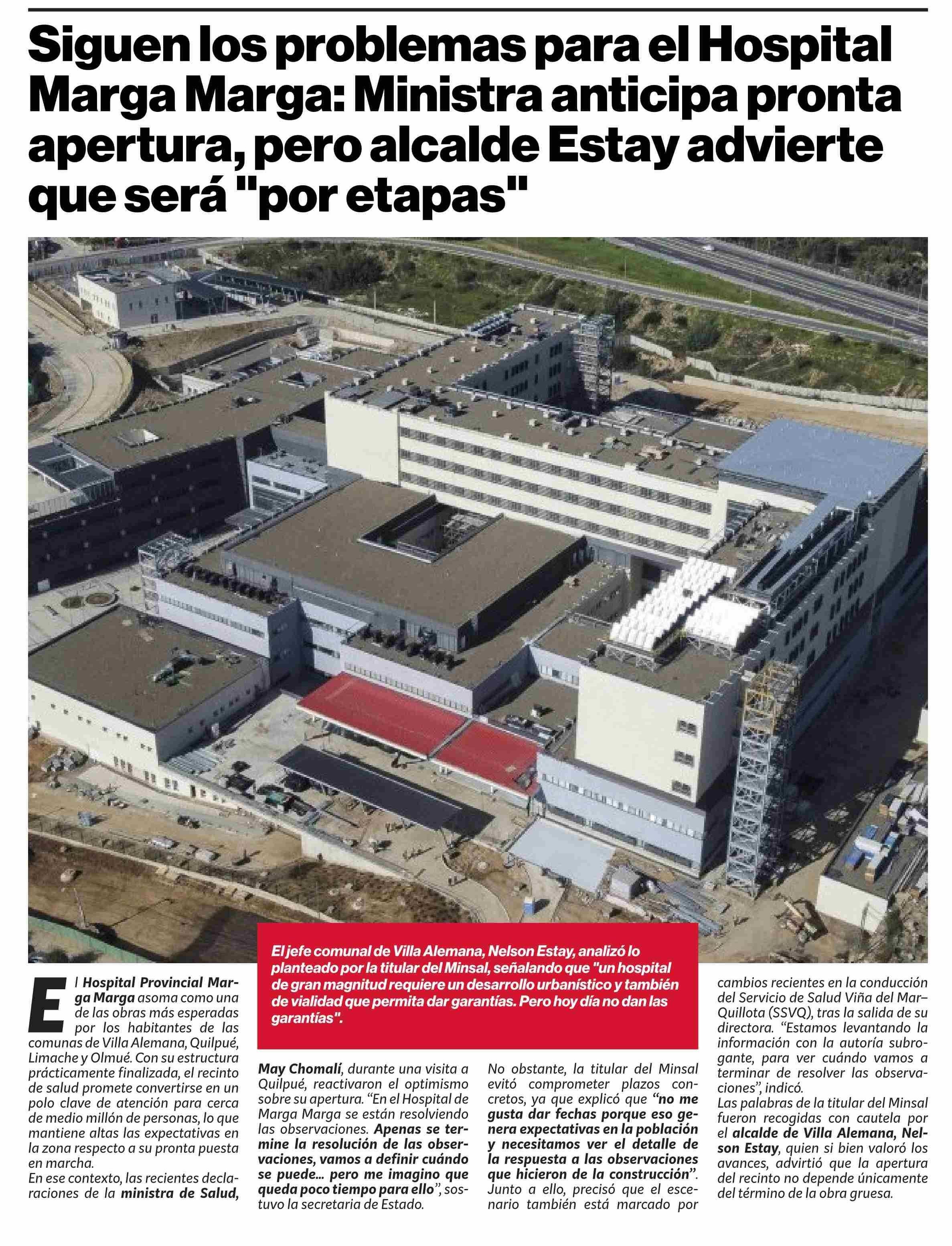 Siguen los problemas para el Hospital Marga Marga: Ministra anticipa pronta apertura, pero alcalde Estay advierte que será "por etapas"