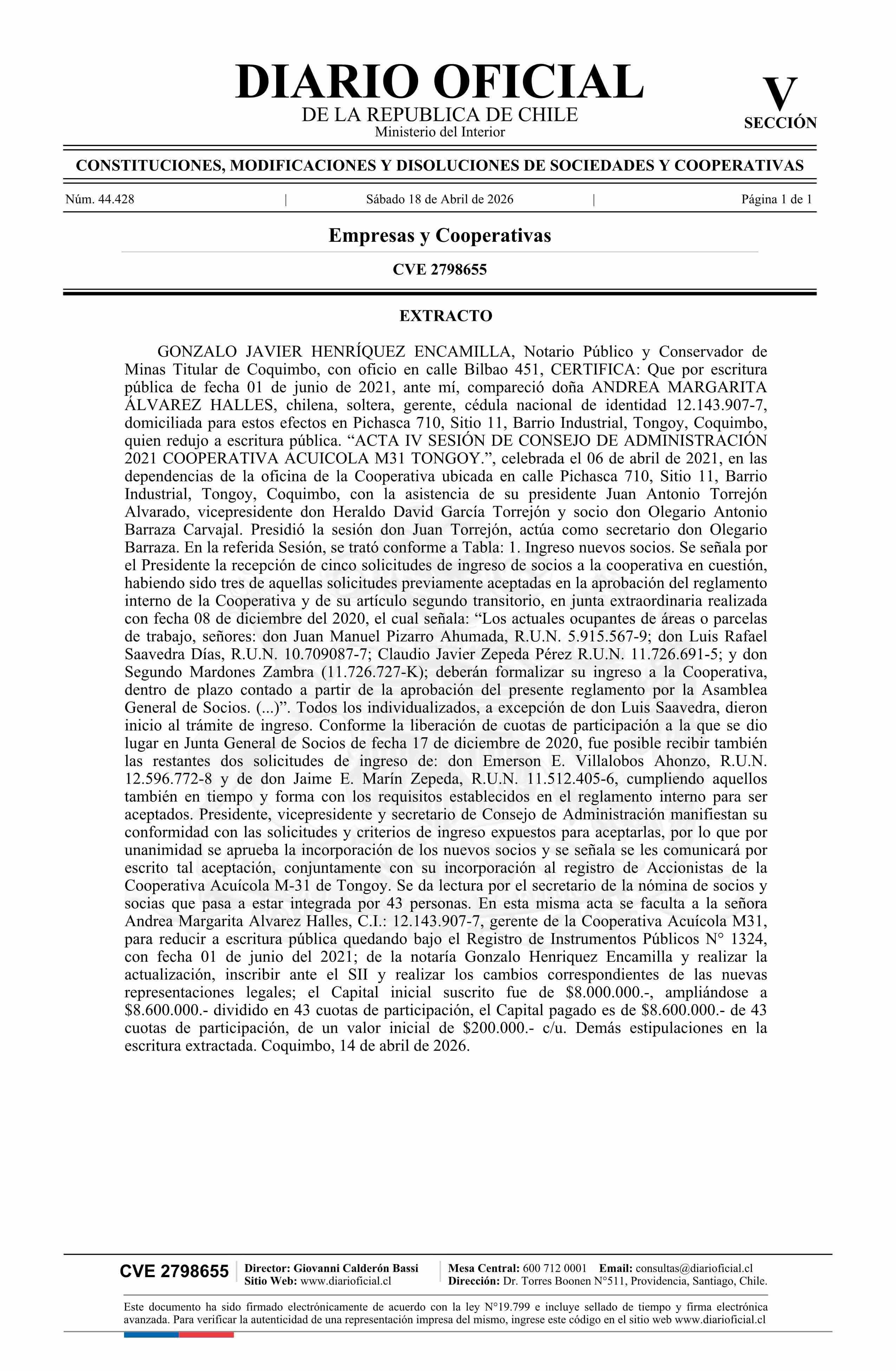 Diario Oficial Edición Electrónica (Diario Oficial de Chile - 5 Empresas Y Cooper)