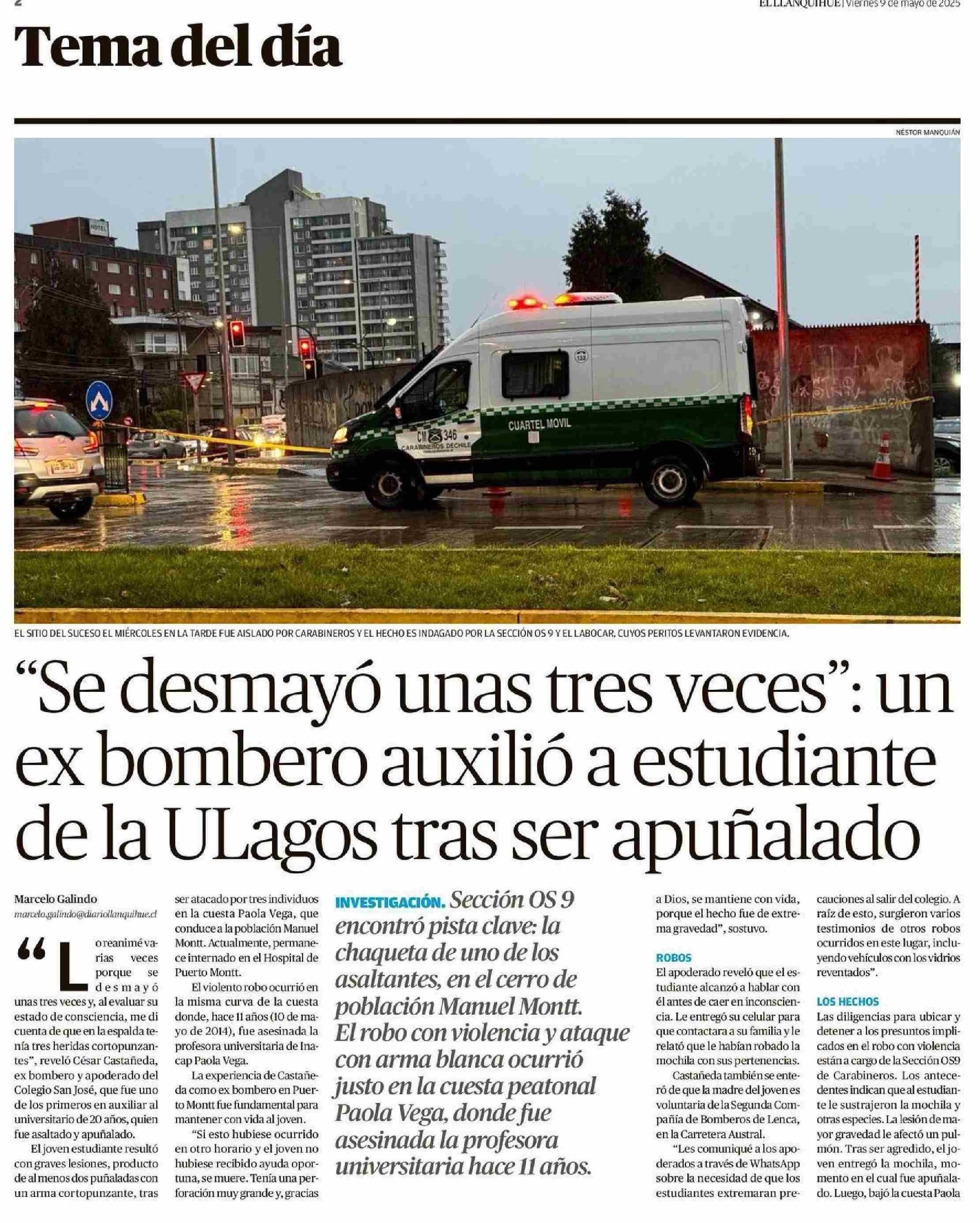 “Se desmayó unas tres veces”: un ex bombero auxilió a estudiante de la ULagos tras ser apuñalado