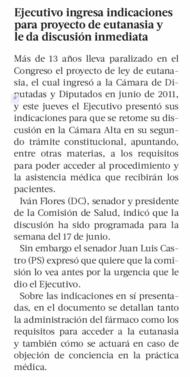 Ejecutivo ingresa indicaciones para proyecto de eutanasia y le da discusión inmediata