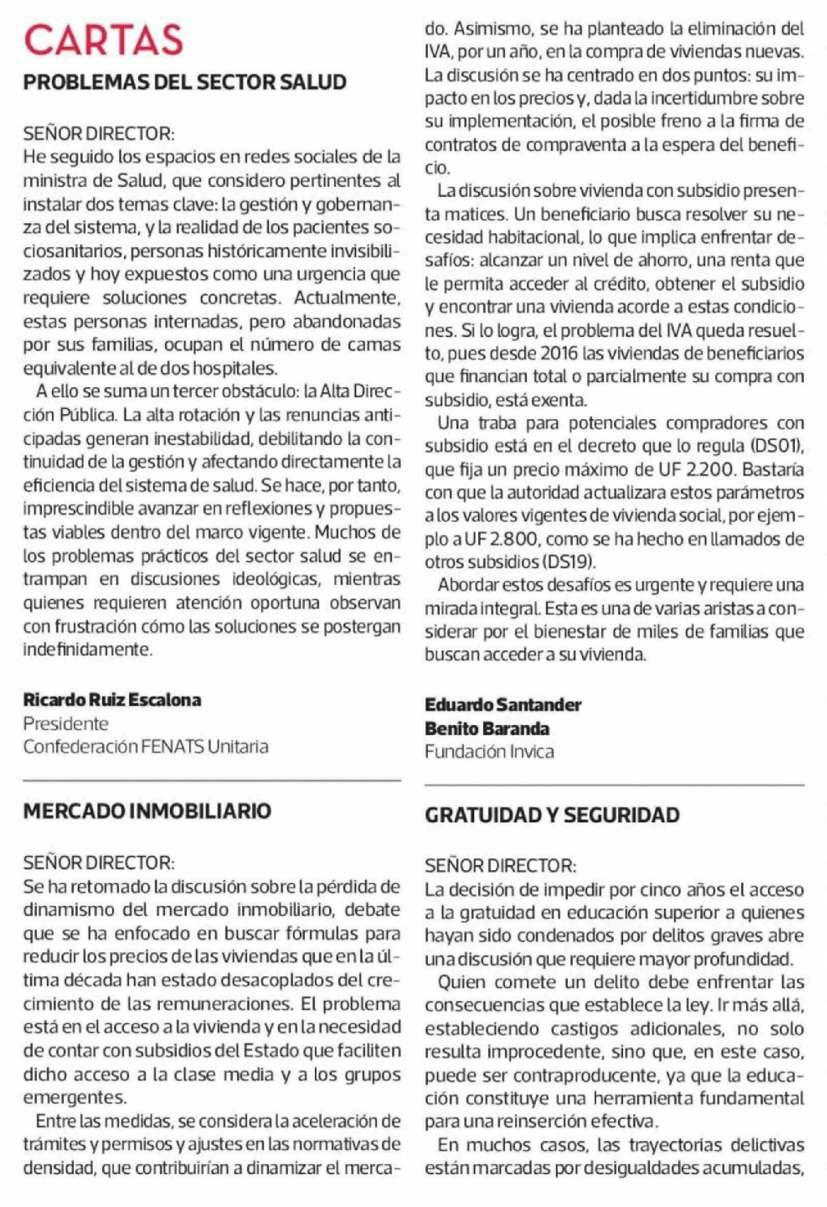 Cartas: MERCADO INMOBILIARIO
