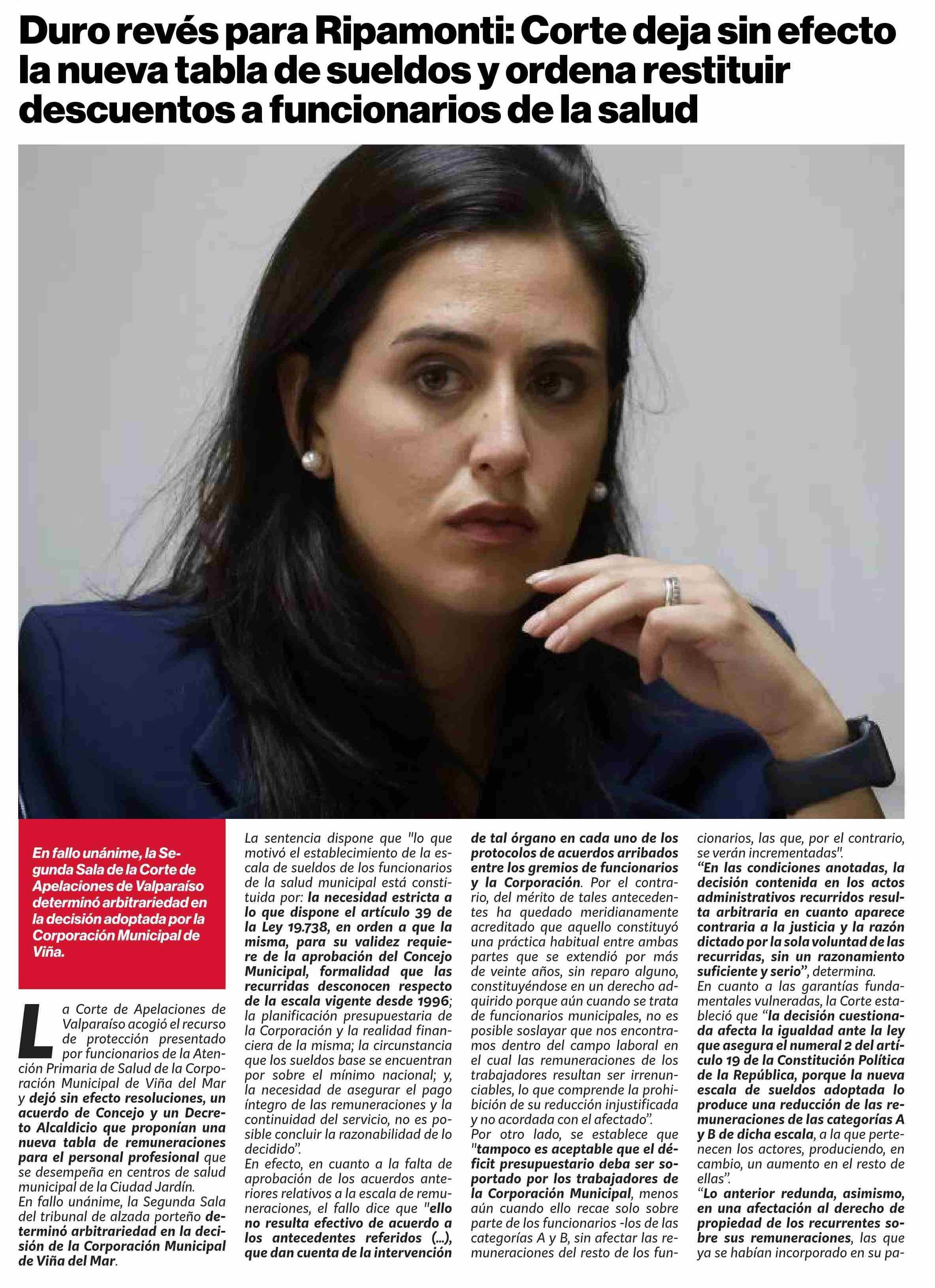 Duro revés para Ripamonti: Corte deja sin efecto la nueva tabla de sueldos y ordena restituir descuentos a funcionarios de la salud