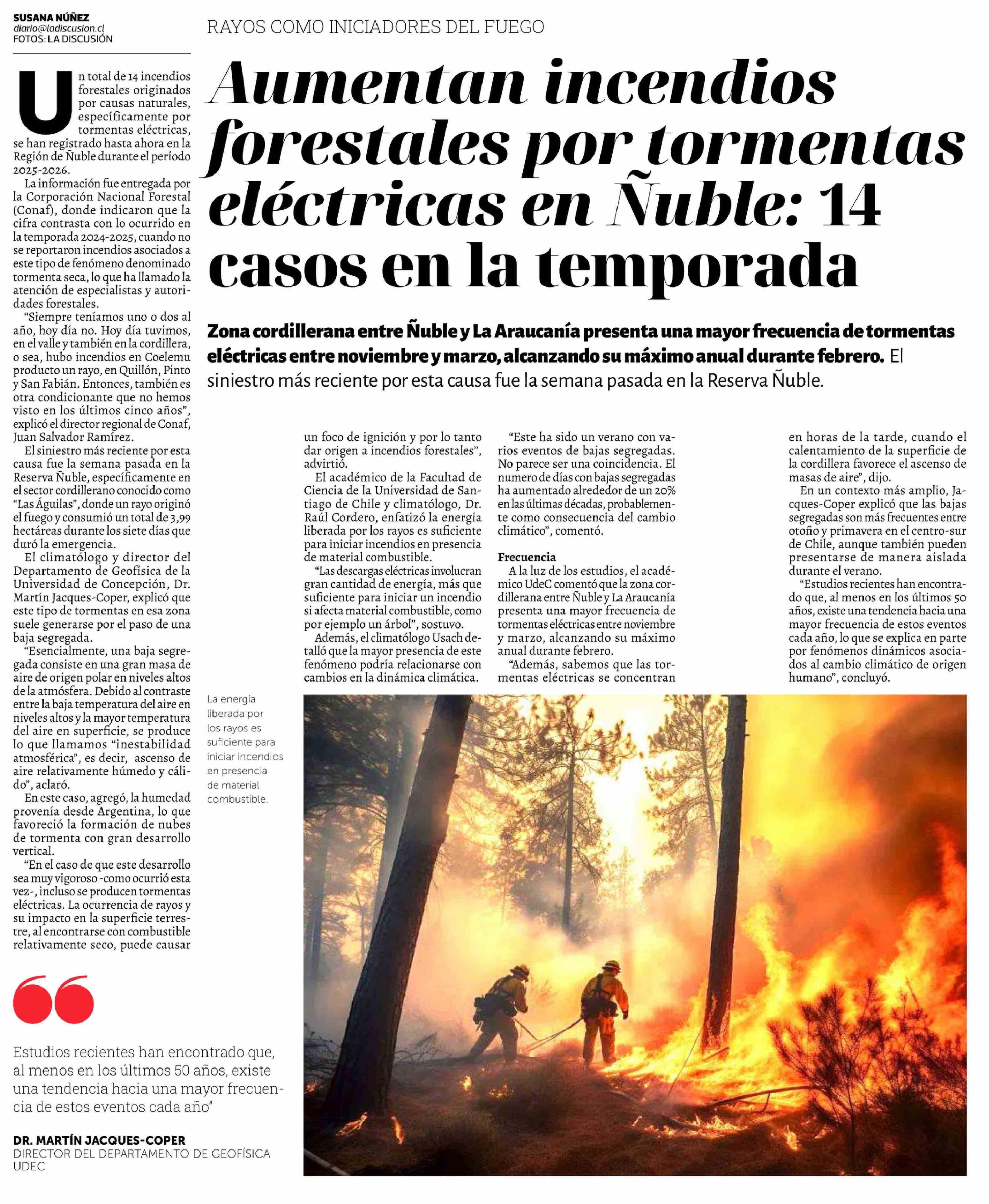 Título: Aumentan incendios forestales por tormentas eléctricas en Nuble: 14 casos en la temporada