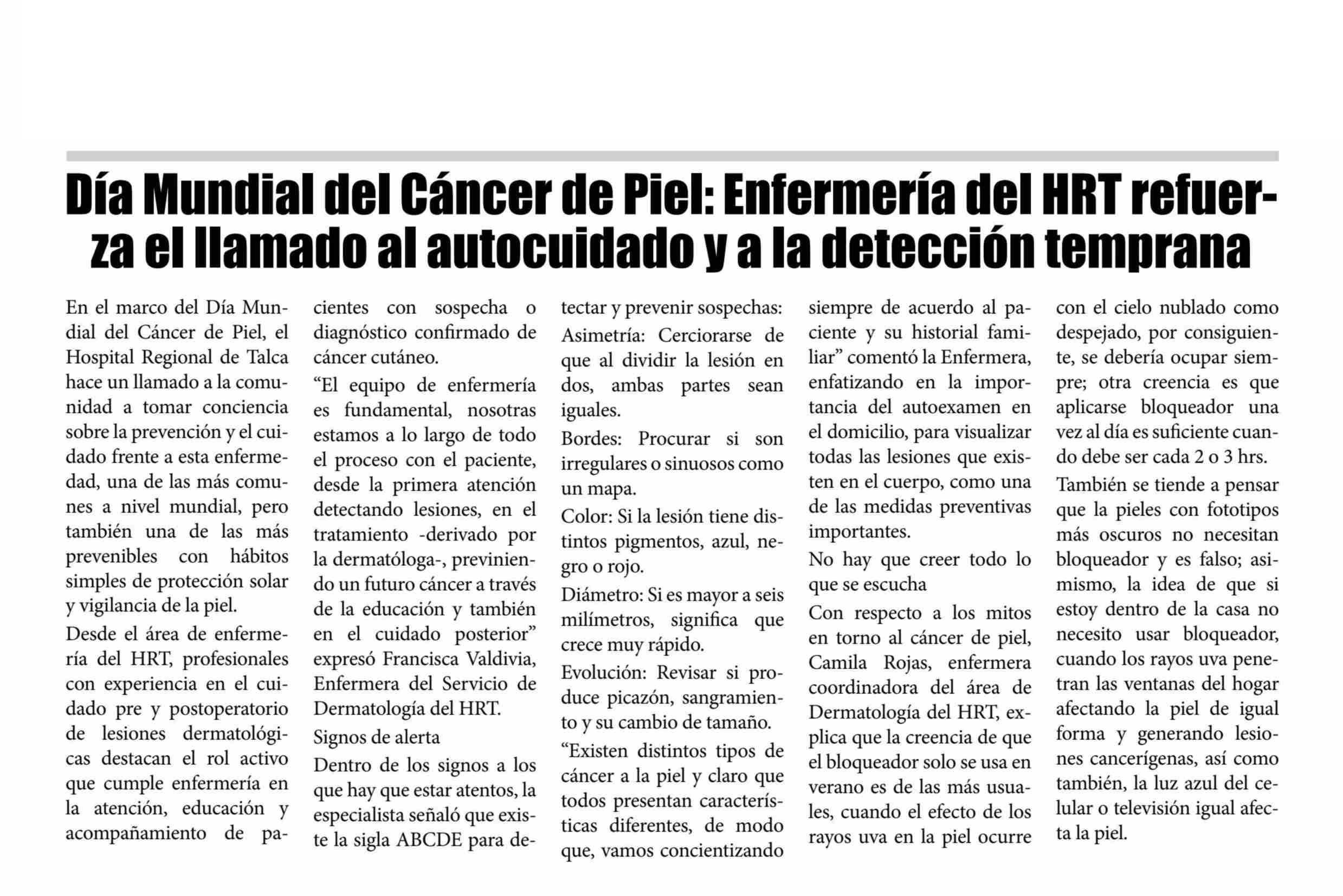 Día Mundial del Cáncer de Piel: Enfermería del HRT refuerZa el llamado al autocuidado y a la detección temprana