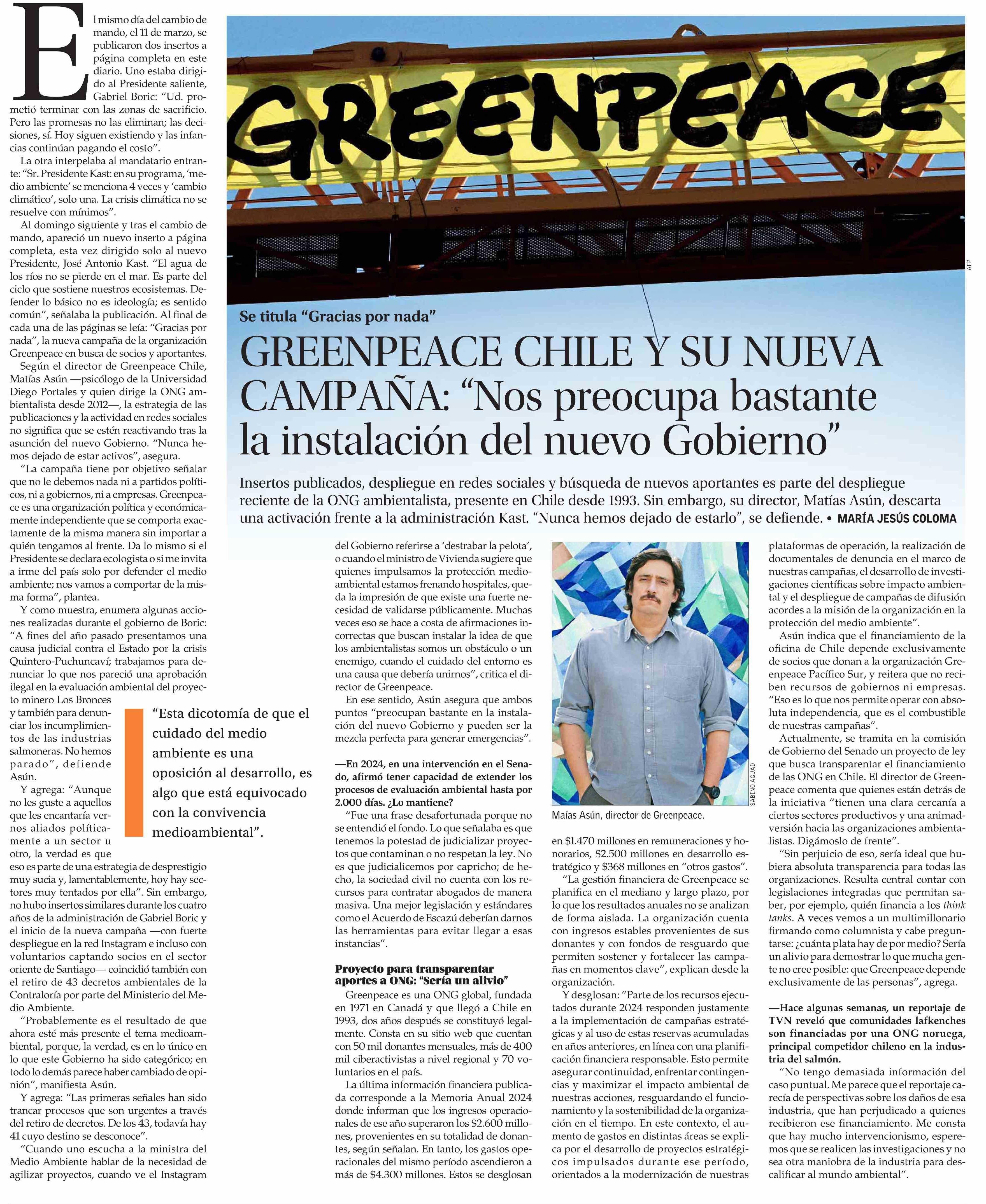 GREENPEACE CHILE Y SU NUEVA CAMPAÑA: “Nos preocupa bastante la instalación del nuevo Gobierno”