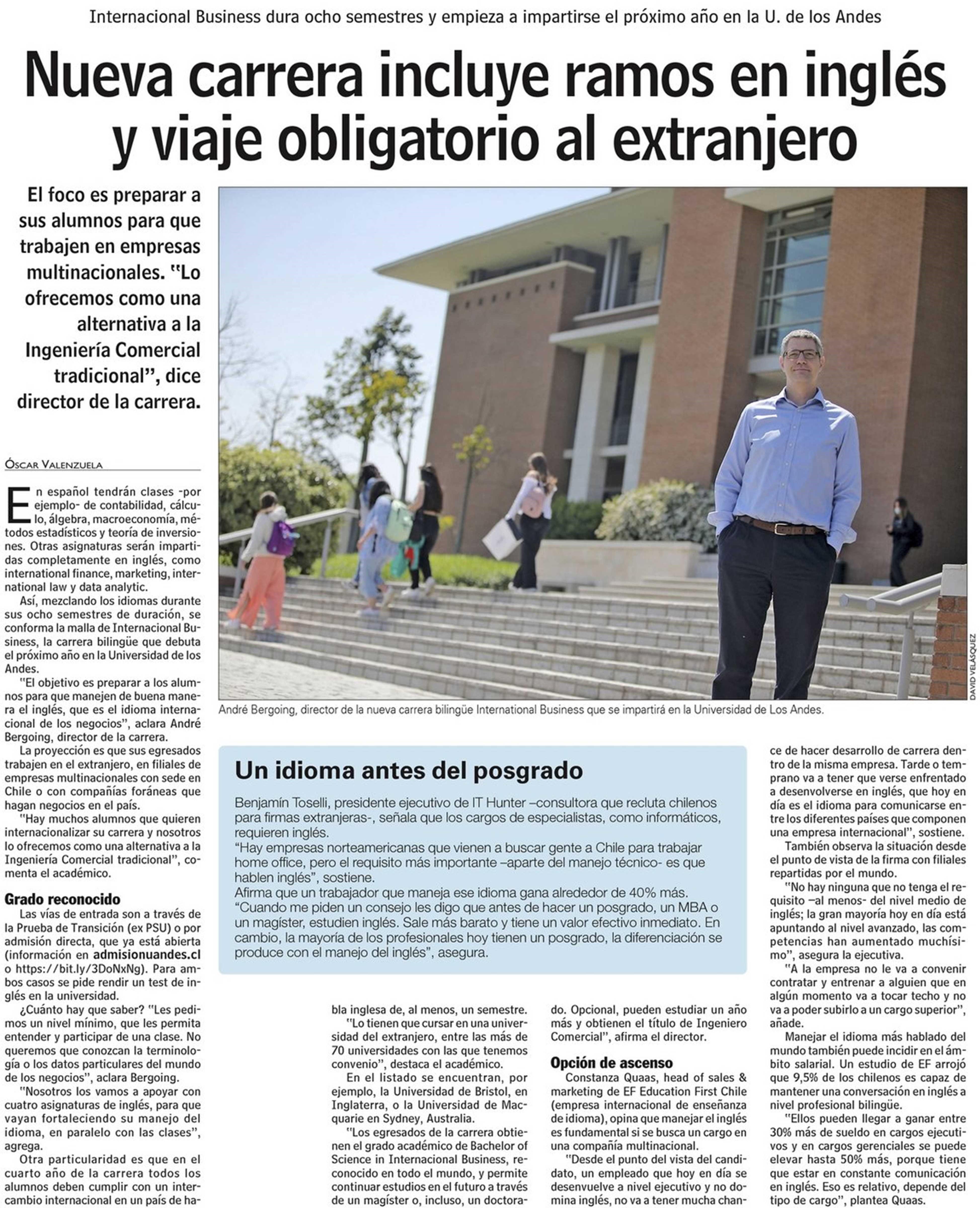 Nueva carrera incluye ramos en inglés y viaje obligatorio al extranjero