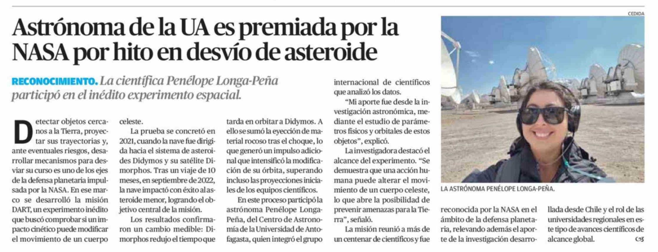 Astrónoma de la UA es premiada por la NASA por hito en desvío de asteroide