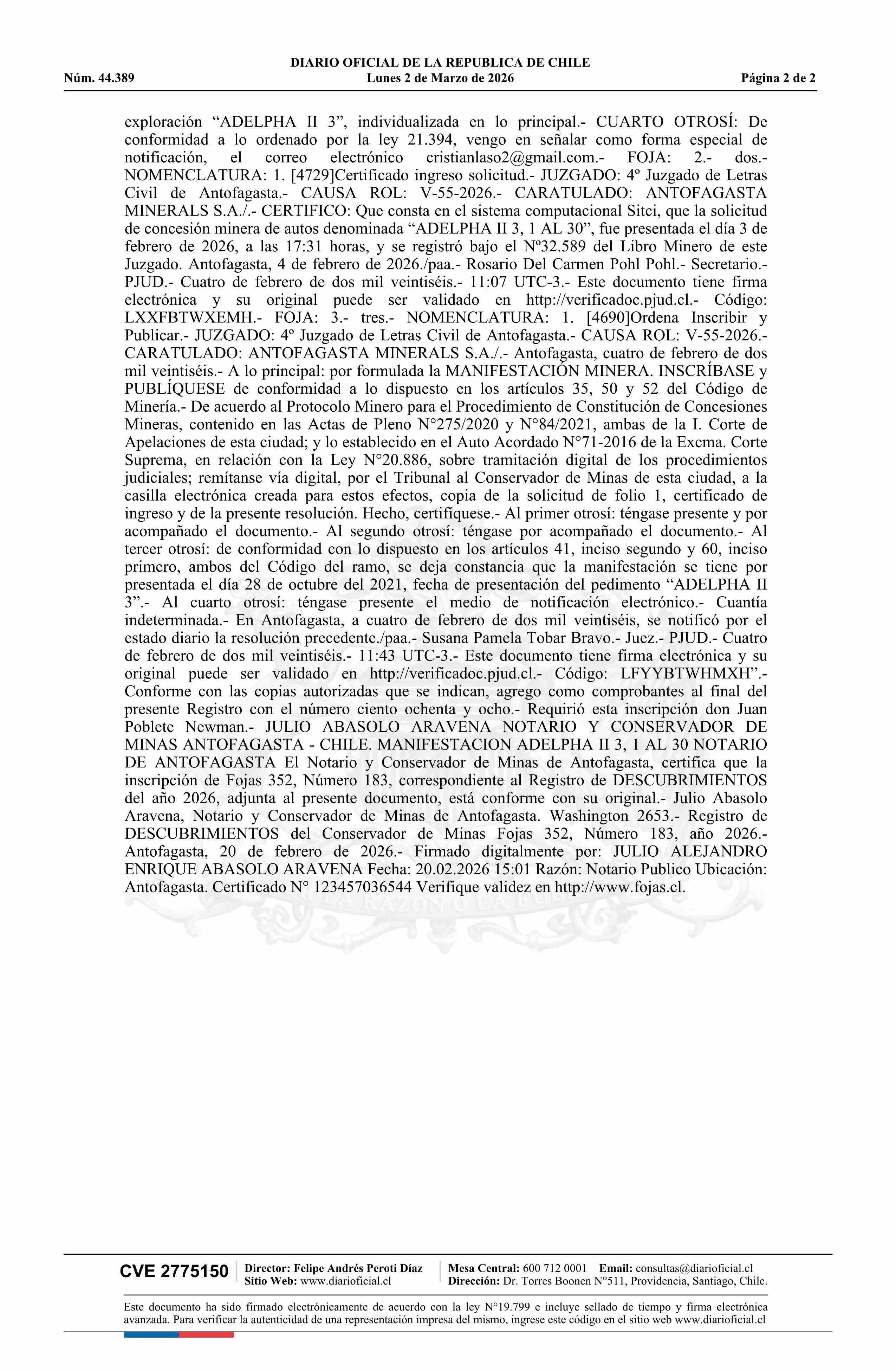 ADELPHA II 3, 1 AL 30 / Antofagasta Minerals S.A.