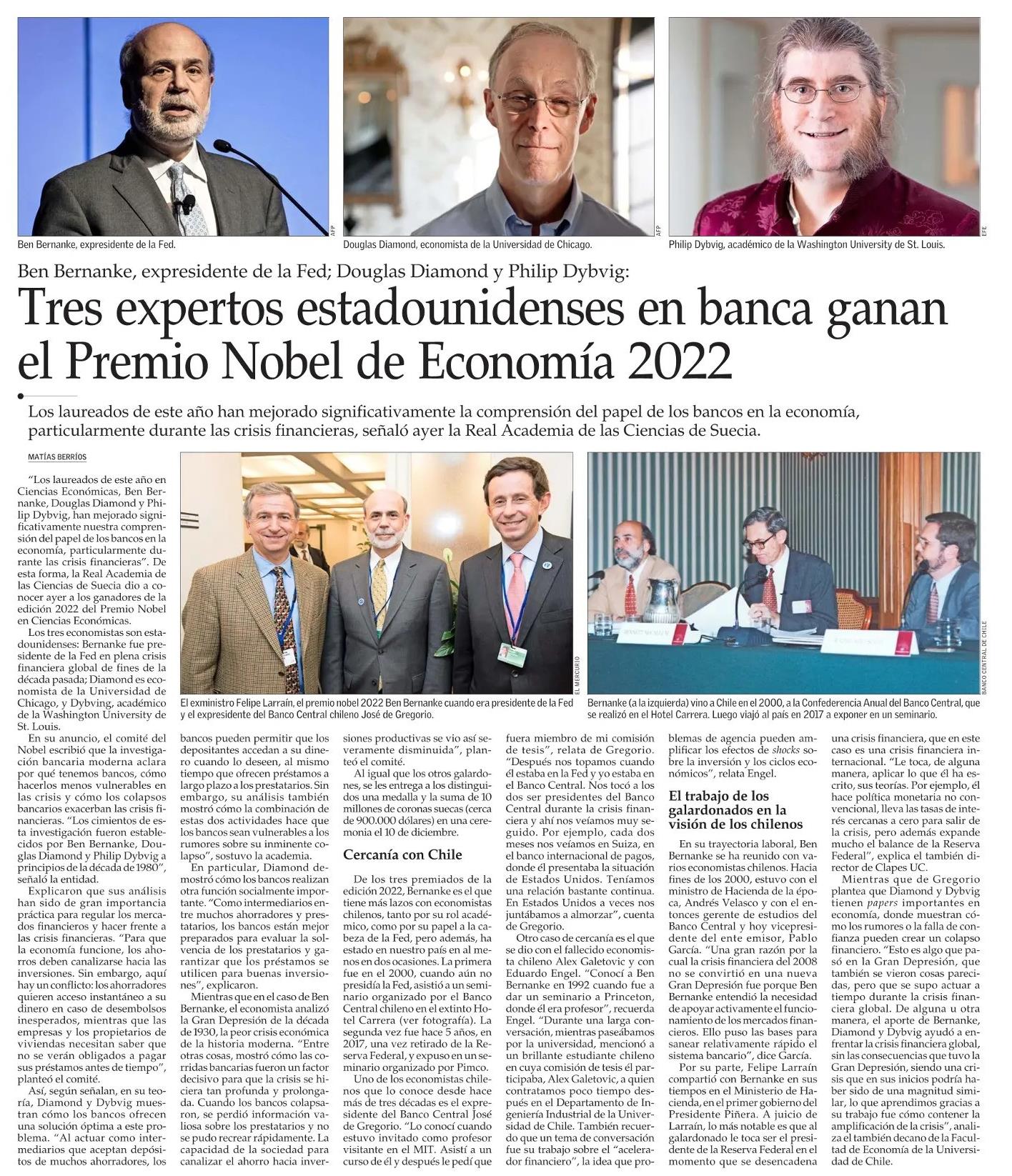Tres expertos estadounidenses en banca ganan el Premio Nobel de Economía 2022