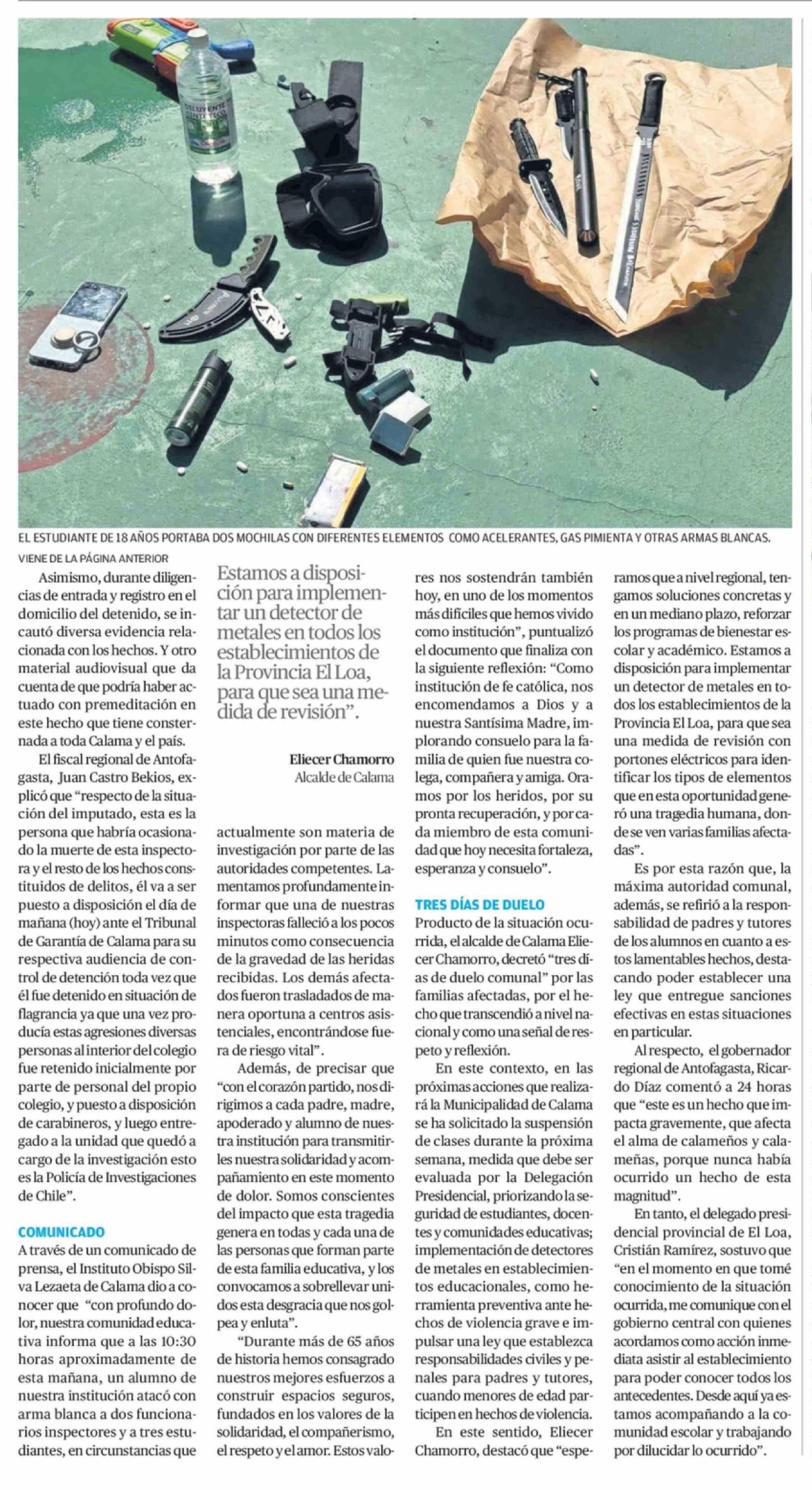 Título: VIENE DE LA PÁGINA ANTERIOR Asimismo, durante diligencias de entrada y registro en el domicilio del detenido, se incautó diversa evidencia relacionada con los hechos. Y otro material audiovisual que da cuenta de que podría haber actuado con premeditación en este hecho que tiene consternada a toda Ca