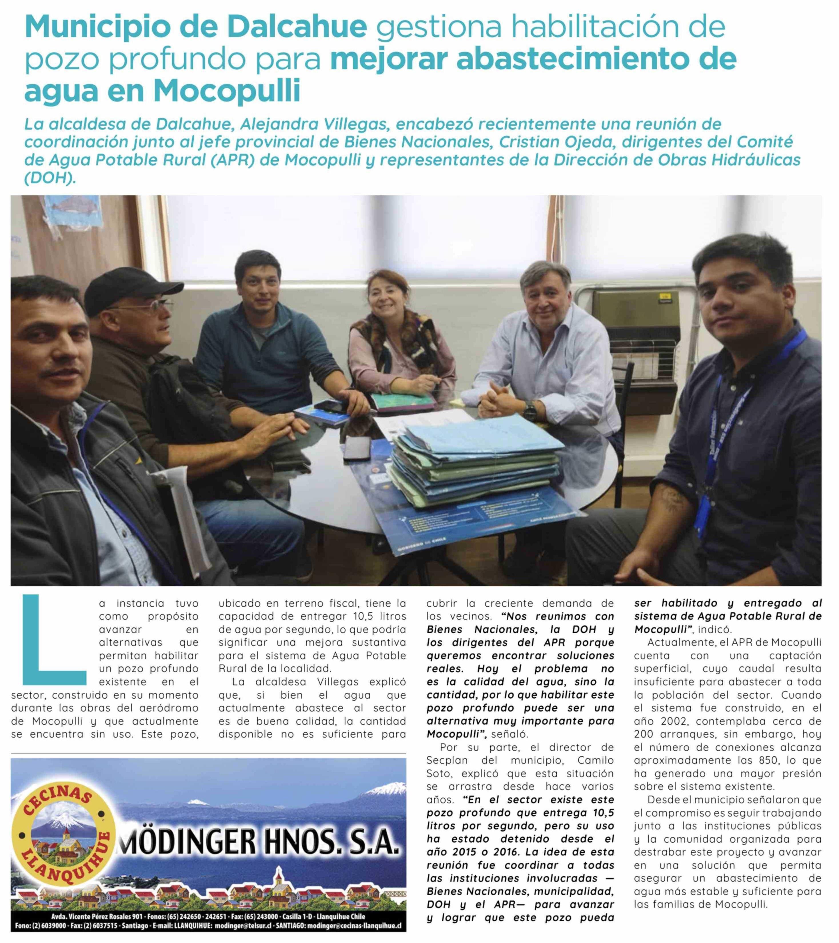 Municipio de Dalcahue gestiona habilitación de pozo profundo para mejorar abastecimiento de agua en Mocopulli