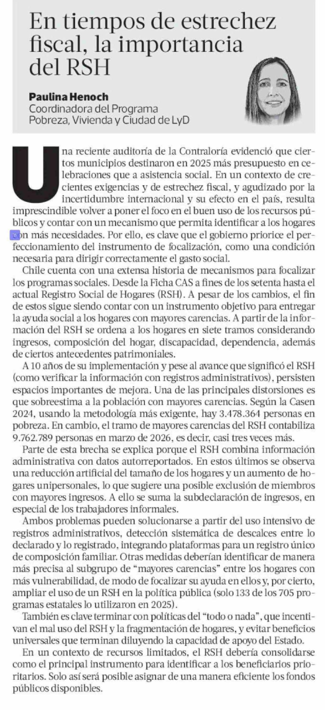 Columnas de Opinión: En tiempos de estrechez fiscal, la importancia del RSH