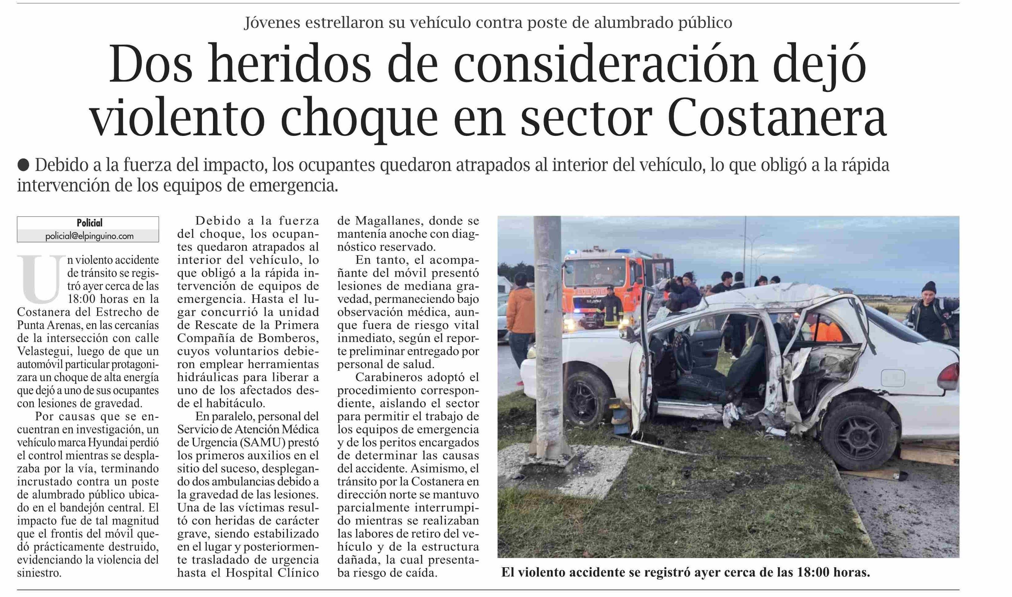 Dos heridos de consideración dejó violento choque en sector Costanera