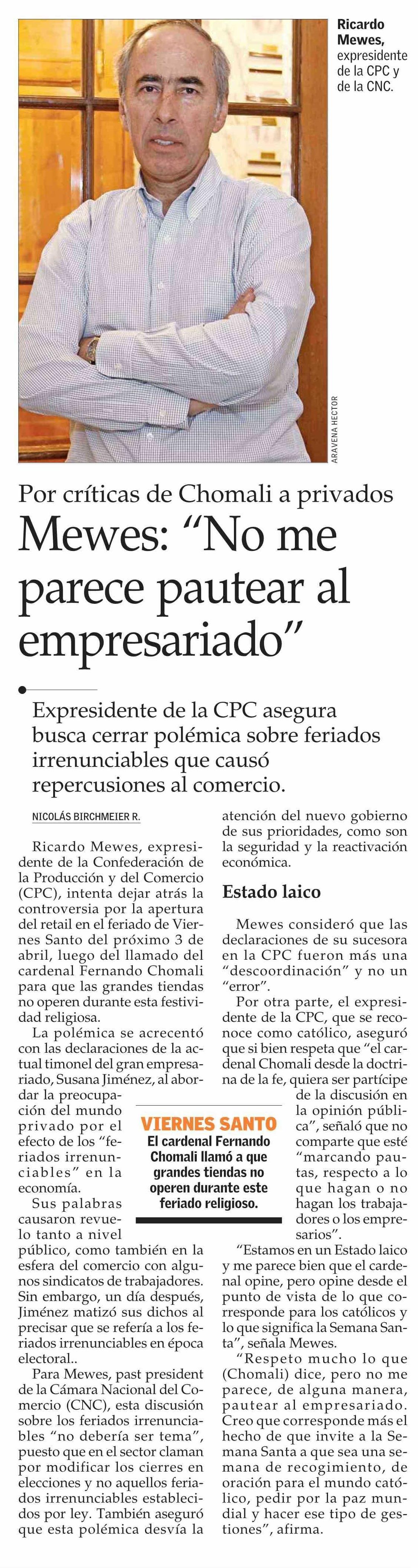 Mewes: “No me parece pautear al empresariado”