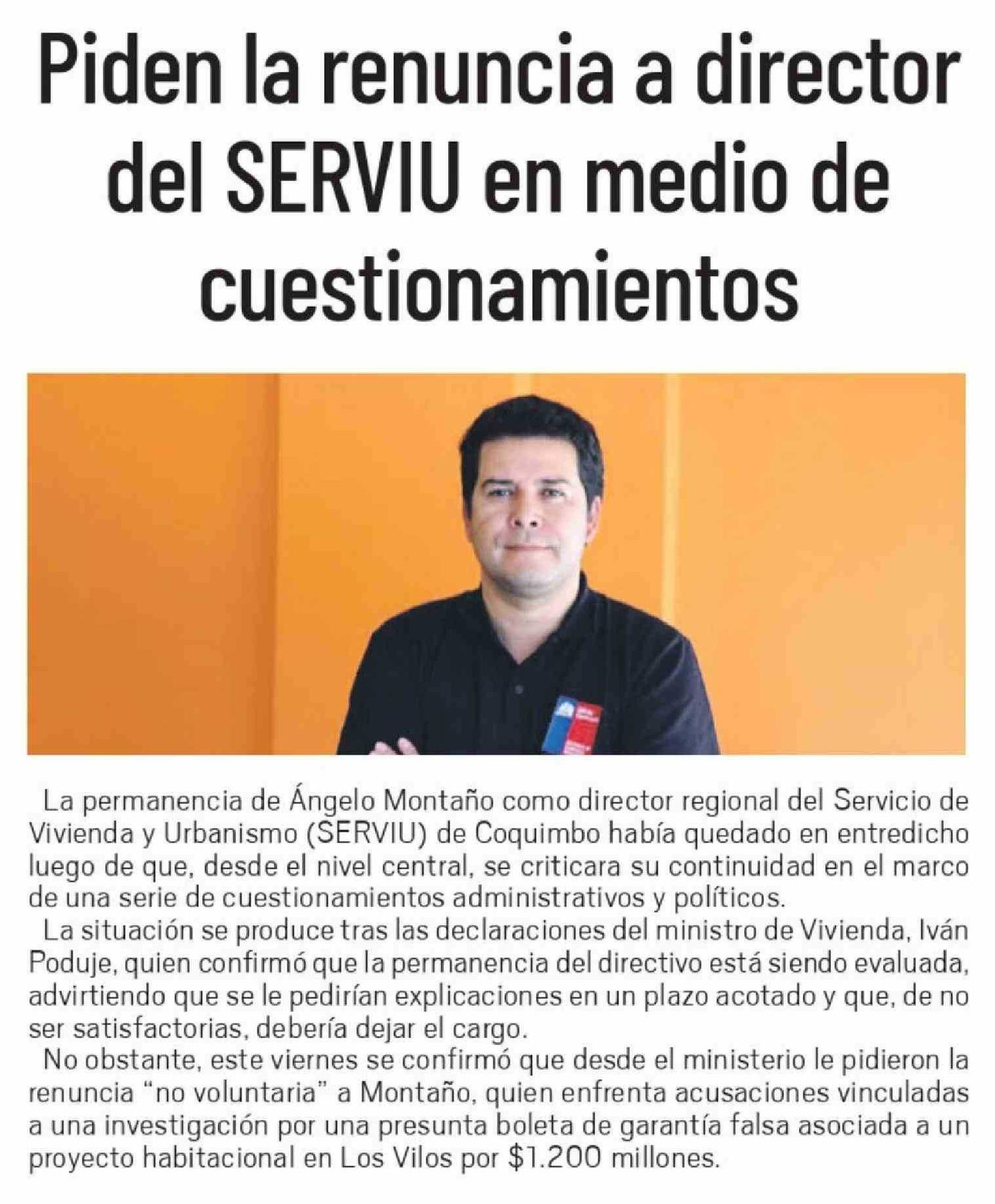 Piden la renuncia a director del SERVIU en medio de cuestionamientos