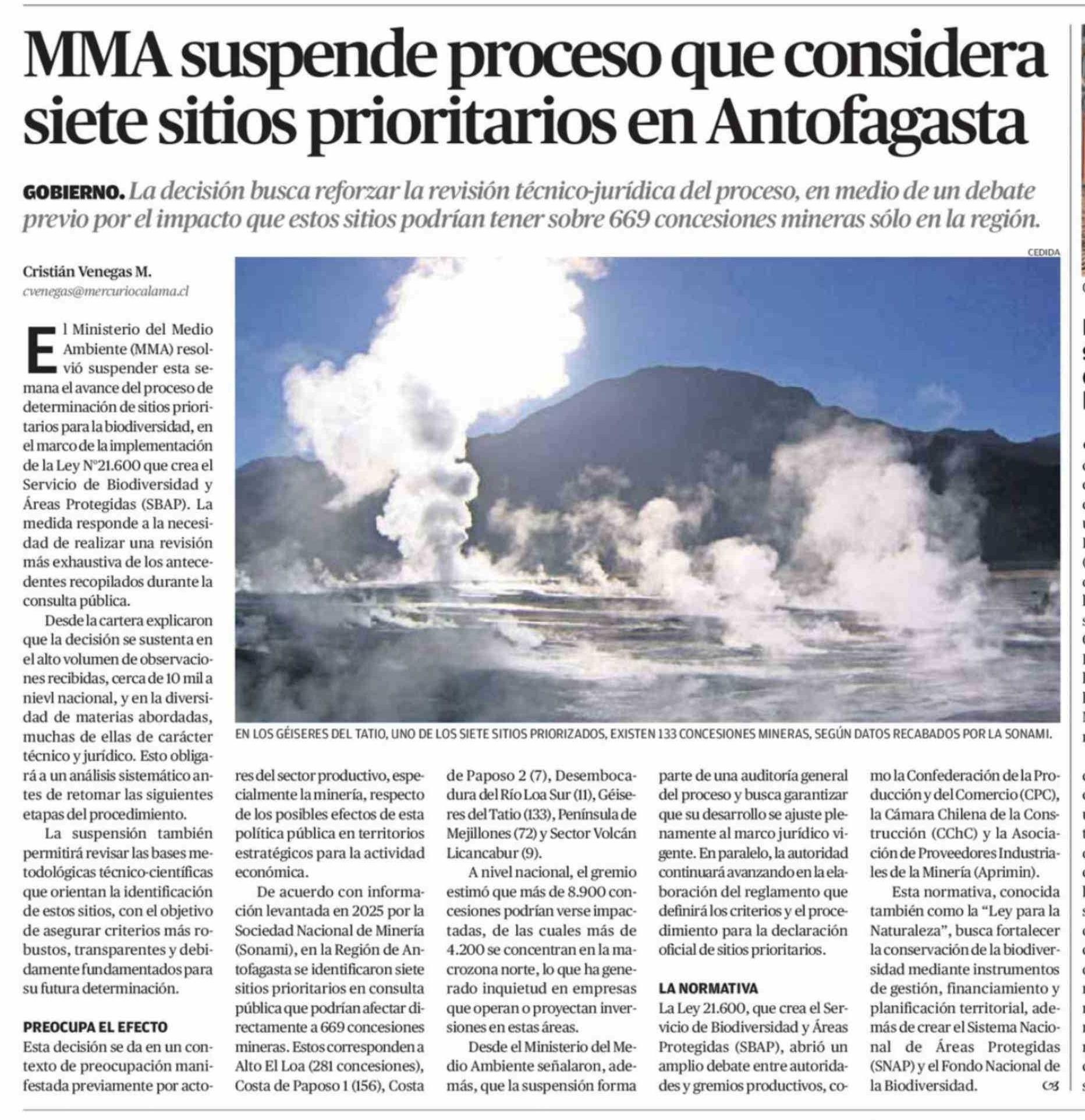 Título: MMA suspende proceso que considera siete sitios prioritarios en Antofagasta