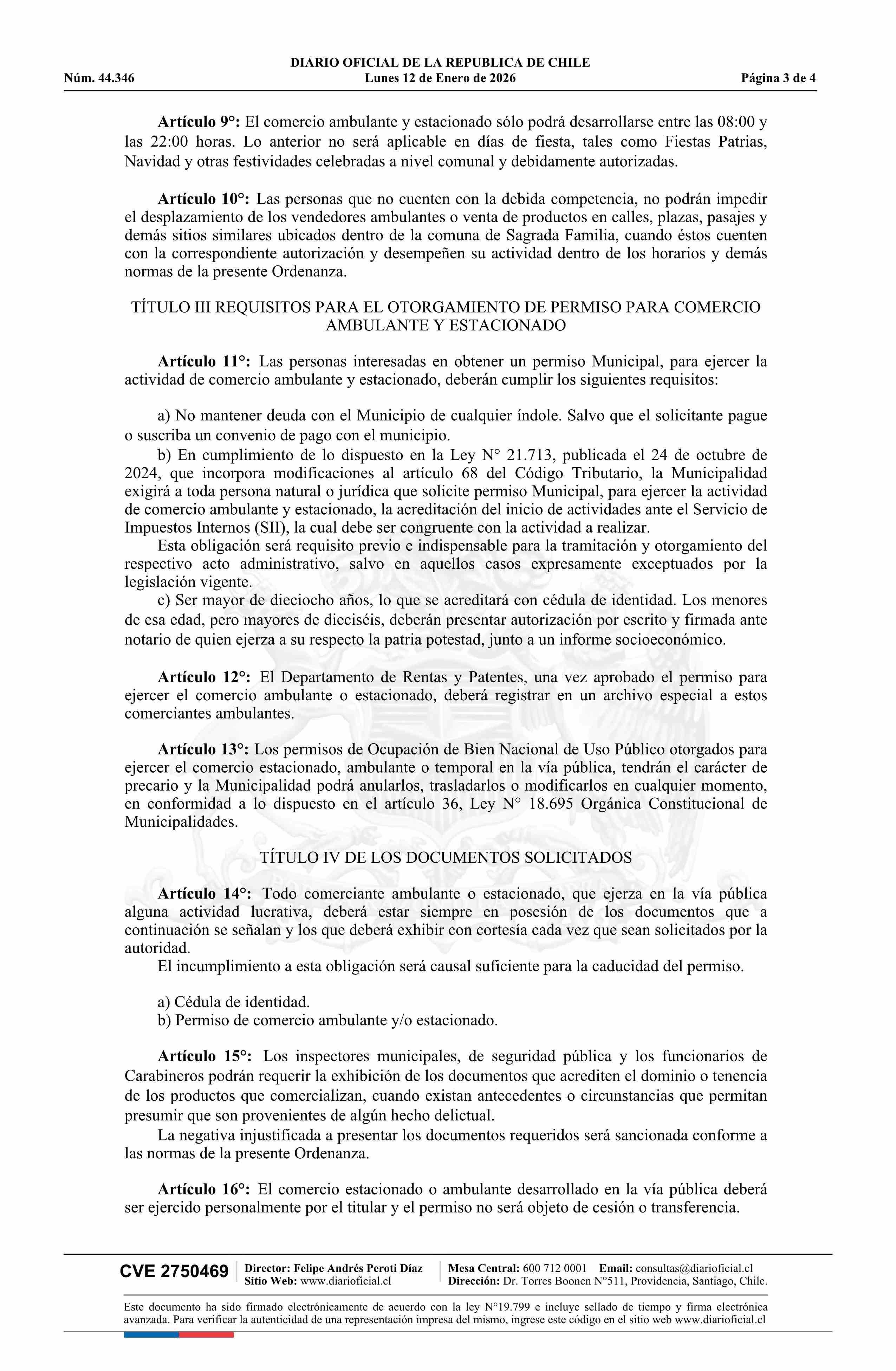 | Título: | Decreto alcaldicio número 1.725, de 2025.- Aprueba modificación y dicta texto refundido, coordinado y sistematizado de Ordenanza municipal para regular el comercio ambulante y estacionado |