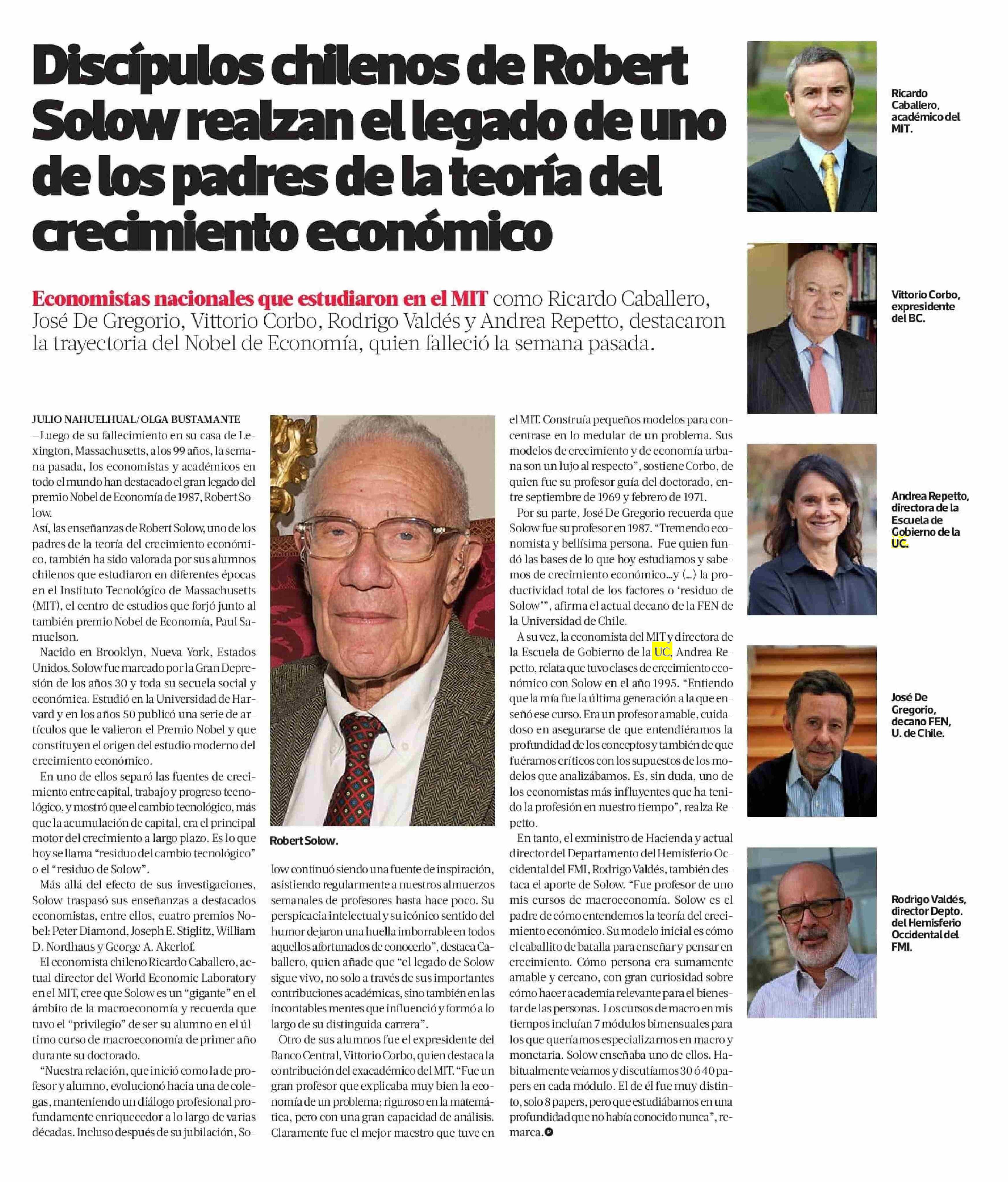 Discípulos chilenos de Robert Solow realzan el legado de uno de los padres de la teoría del crecimiento económico
