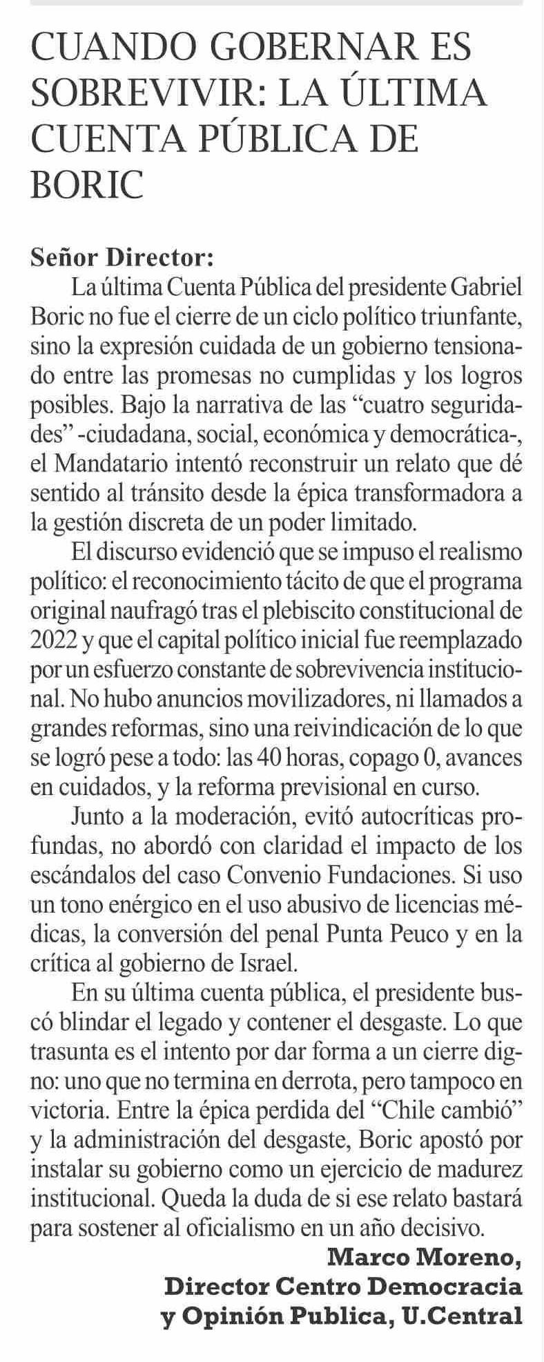 CARTAS: CUANDO GOBERNAR ES SOBREVIVIR: LA ÚLTIMA CUENTA PÚBLICA DE BORIC