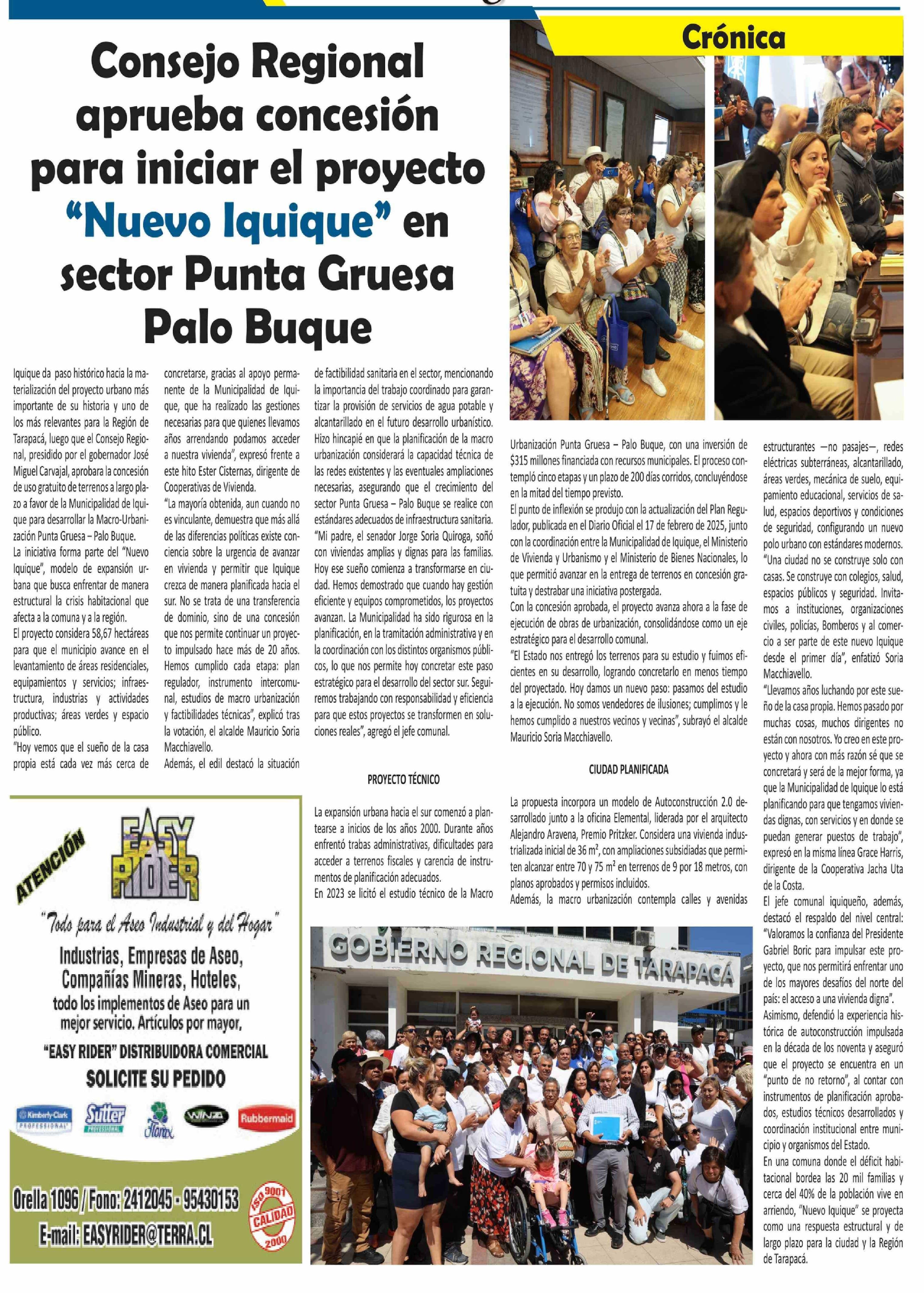 Consejo Regional aprueba concesión para iniciar el proyecto "Nuevo Iquique" en sector Punta Gruesa Palo Buque