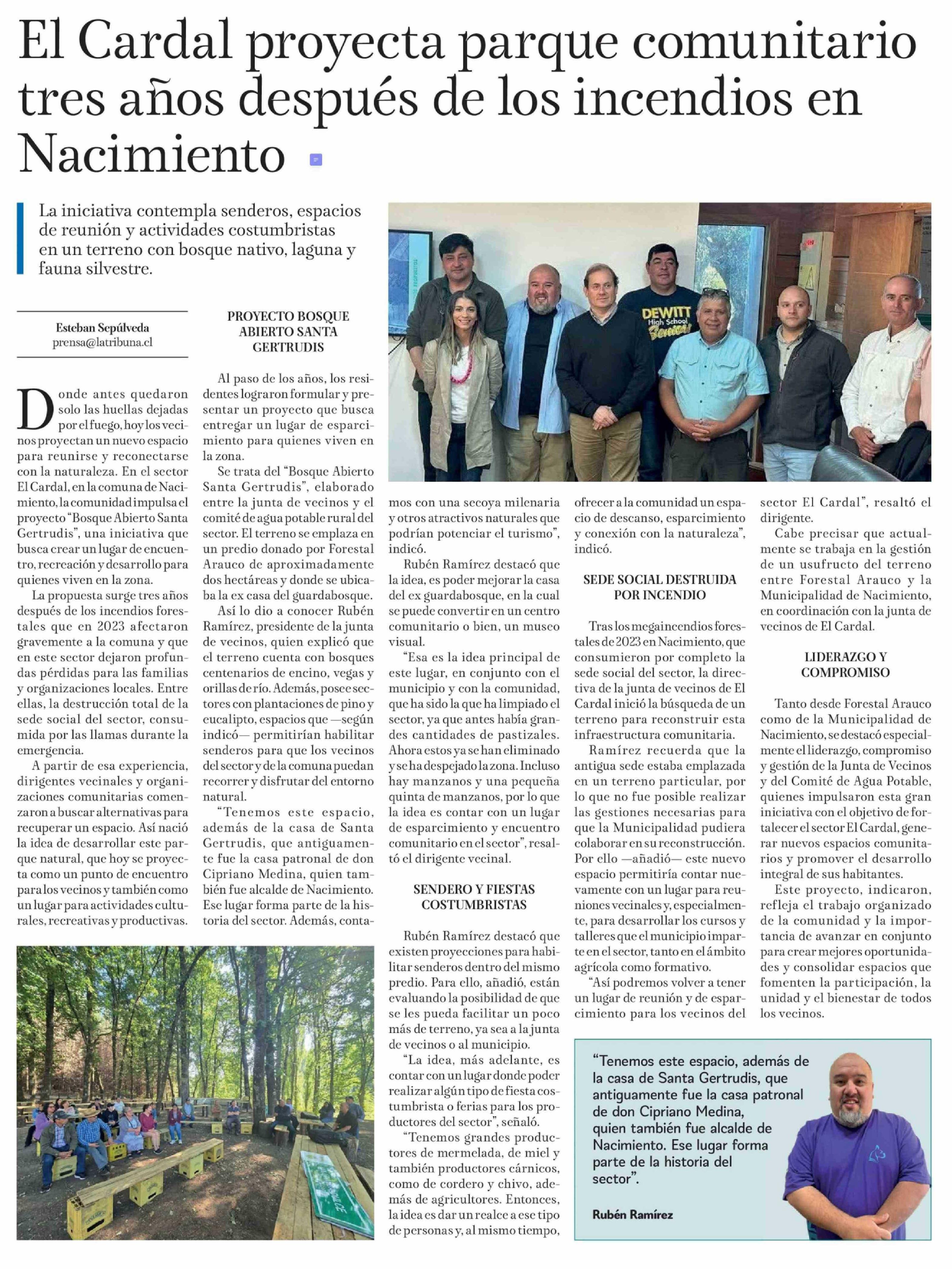 El Cardal proyecta parque comunitario tres años después de los incendios en Nacimiento