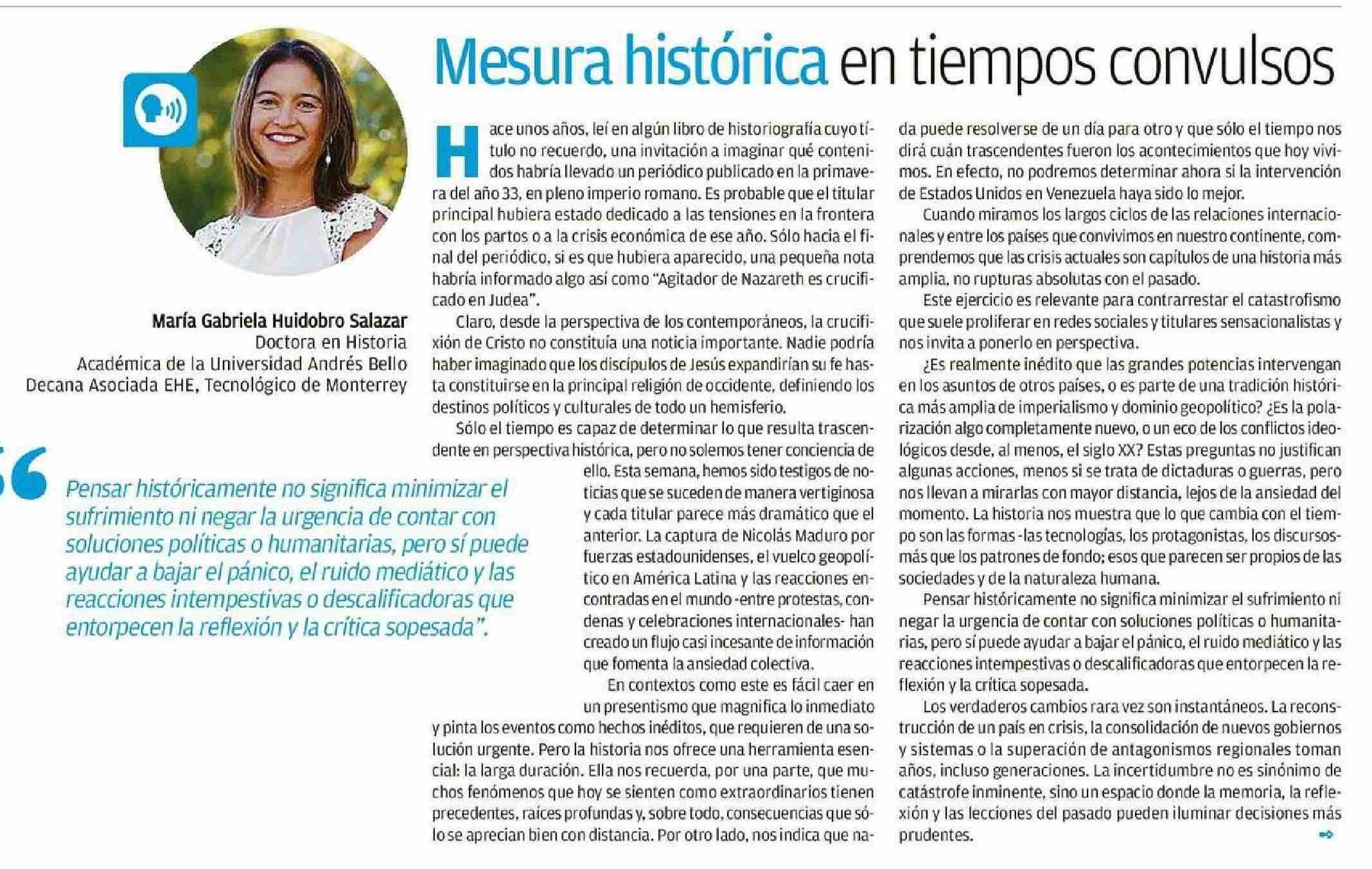 Columnas de Opinión: Mesura histórica en tiempos convulsos