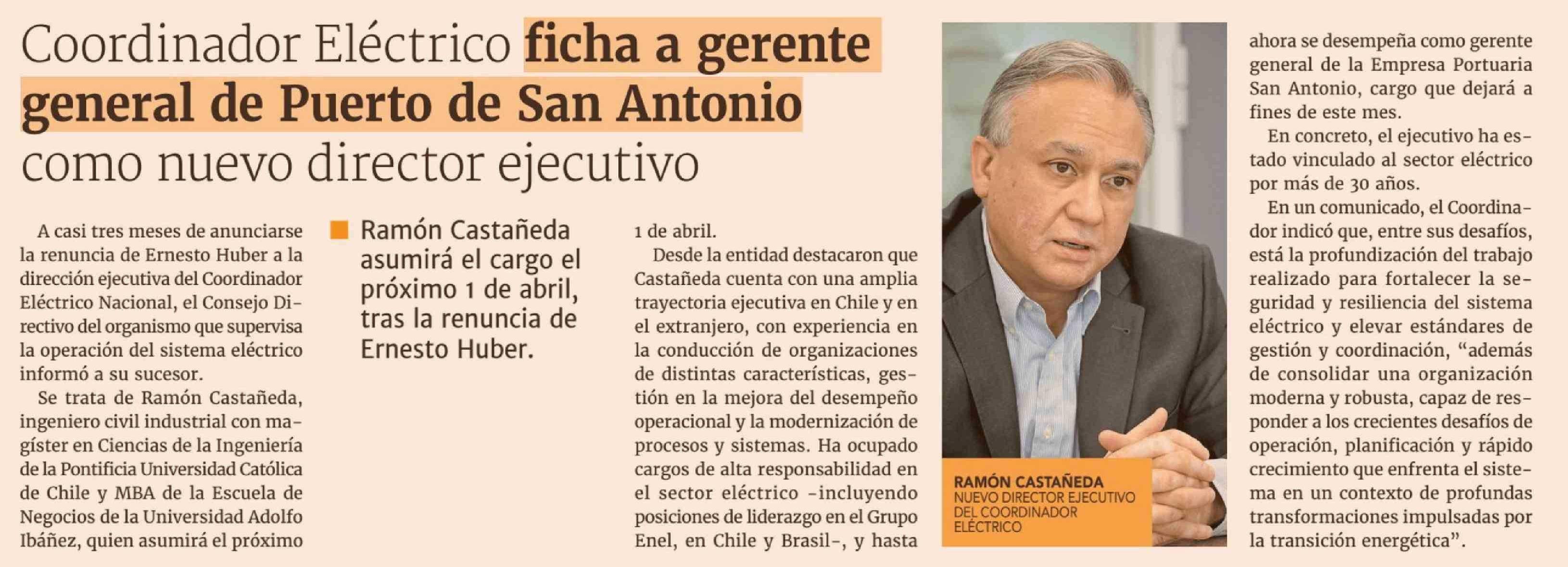 Coordinador Eléctrico ficha a gerente general de Puerto de San Antonio como nuevo director ejecutivo