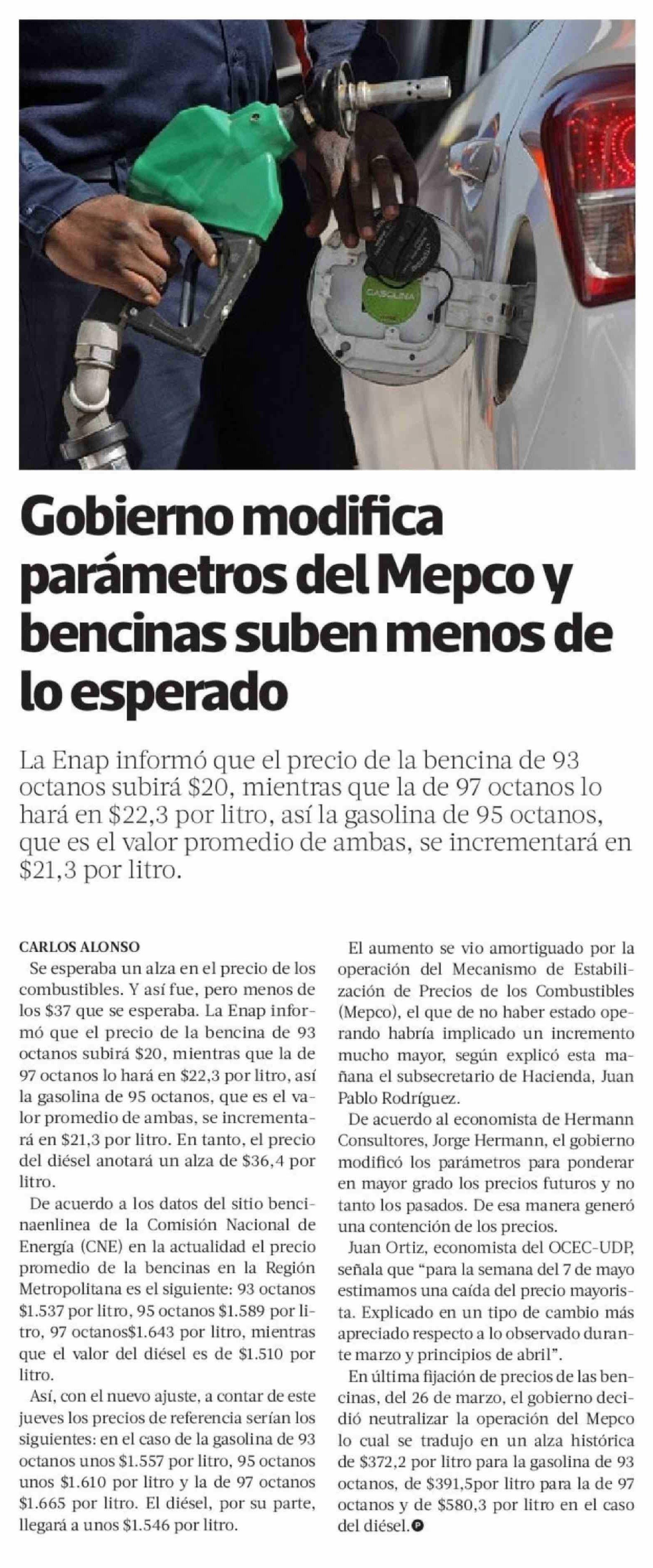 Gobierno modifica parámetros del Mepco y bencinas suben menos de lo esperado