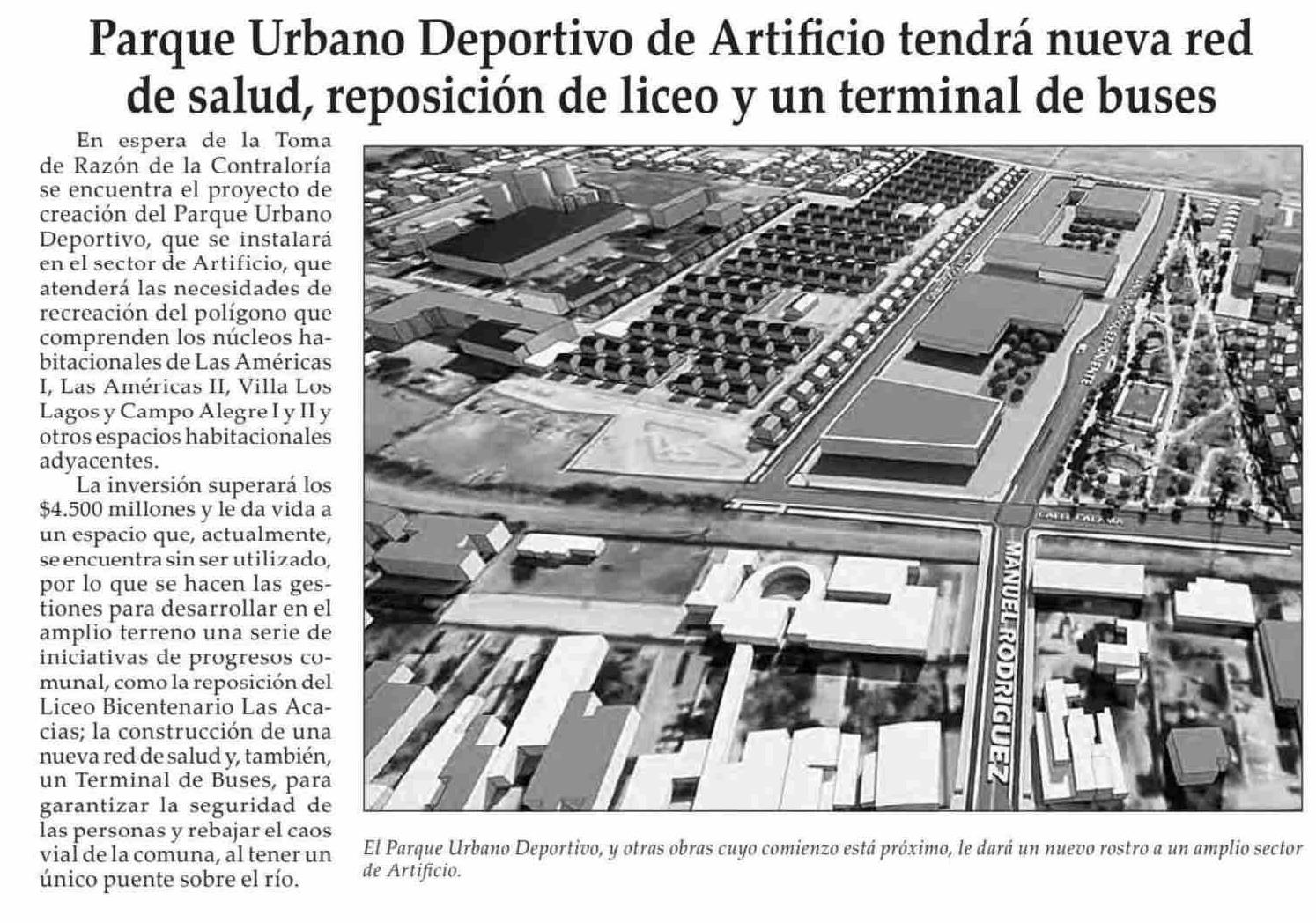 Parque Urbano Deportivo de Artificio tendrá nueva red de salud, reposición de liceo y un terminal de buses