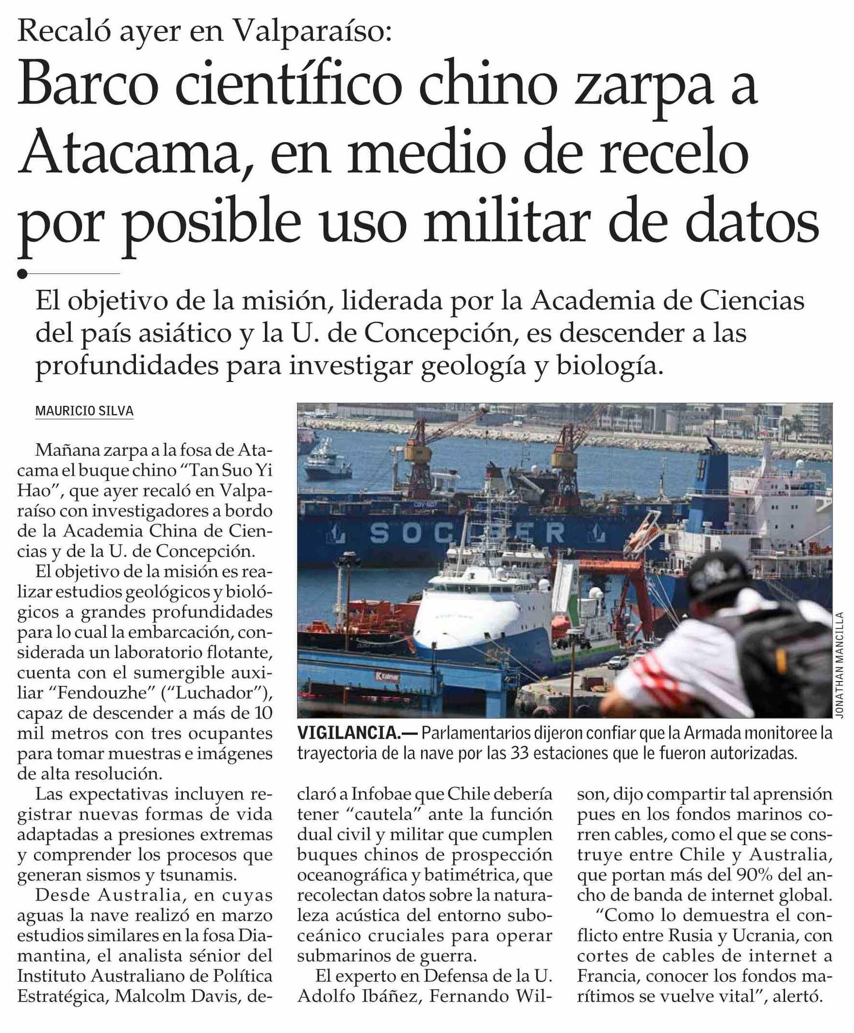 Barco científico chino zarpa a Atacama, en medio de recelo por posible uso militar de datos
