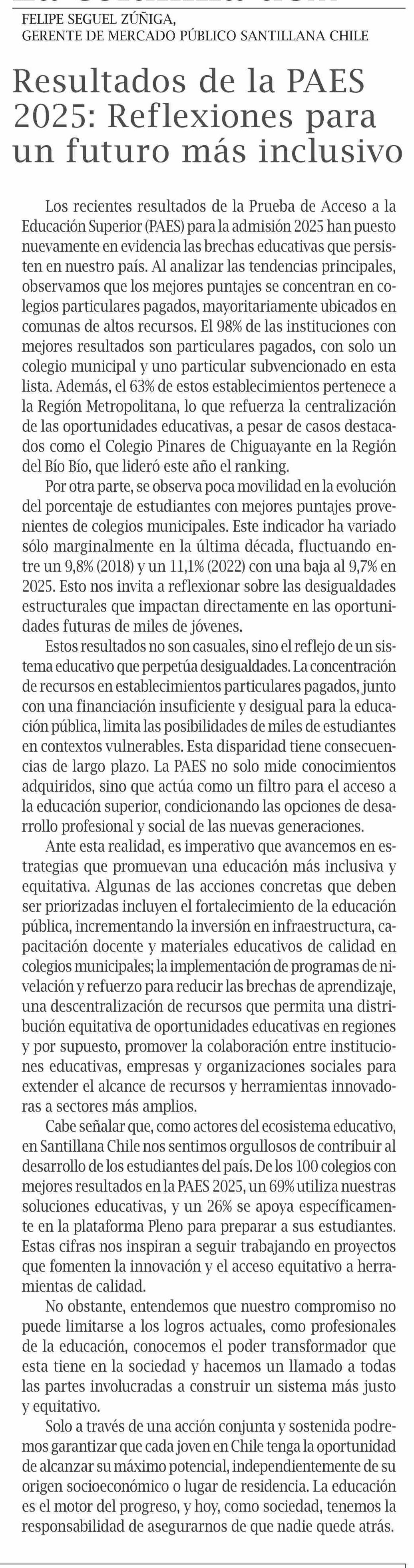 Resultados de la PAES 2025: Reflexiones para un futuro más inclusivo