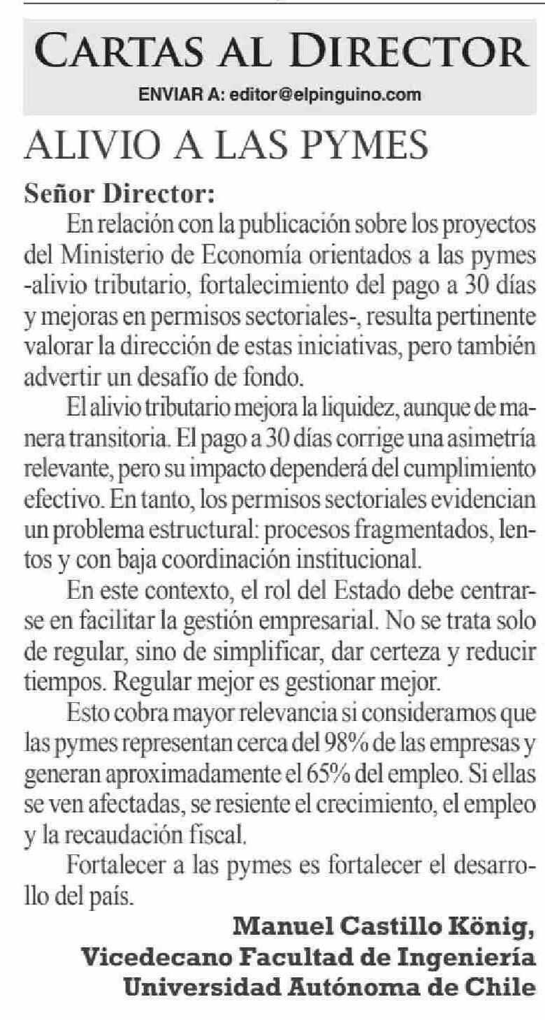 Cartas: ALIVIO A LAS PYMES