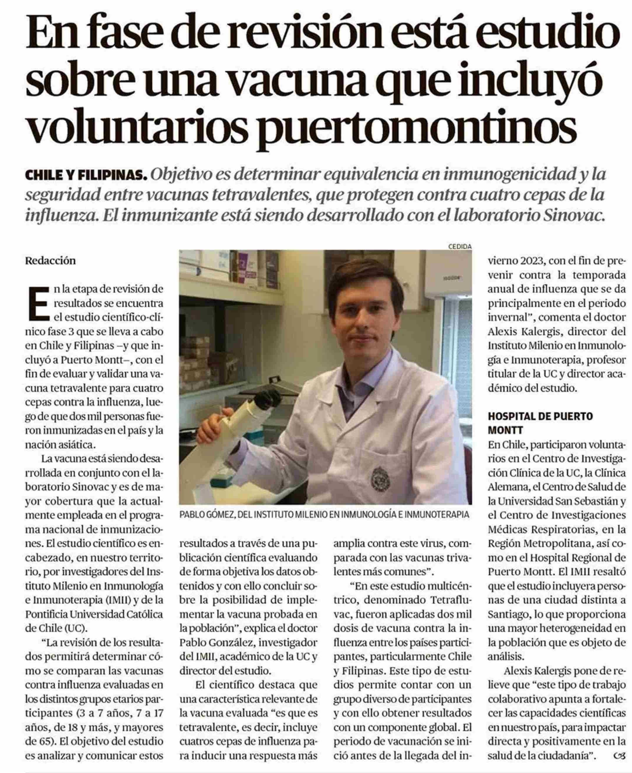 En fase de revisión está estudio sobre una vacuna que incluyó voluntarios puertomontinos