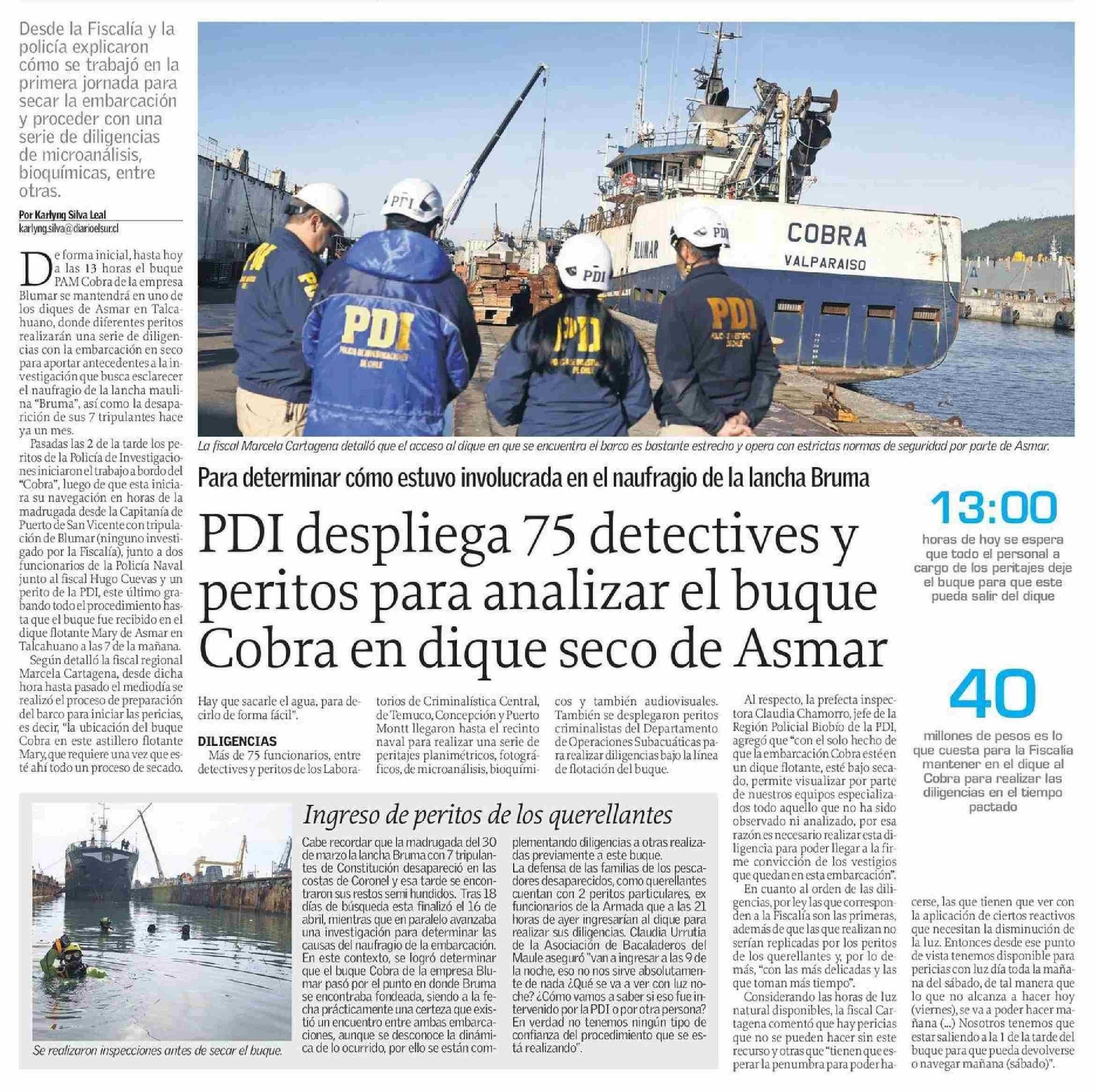 PDI despliega 75 detectives y peritos para analizar el buque Cobra en dique seco de Asmar