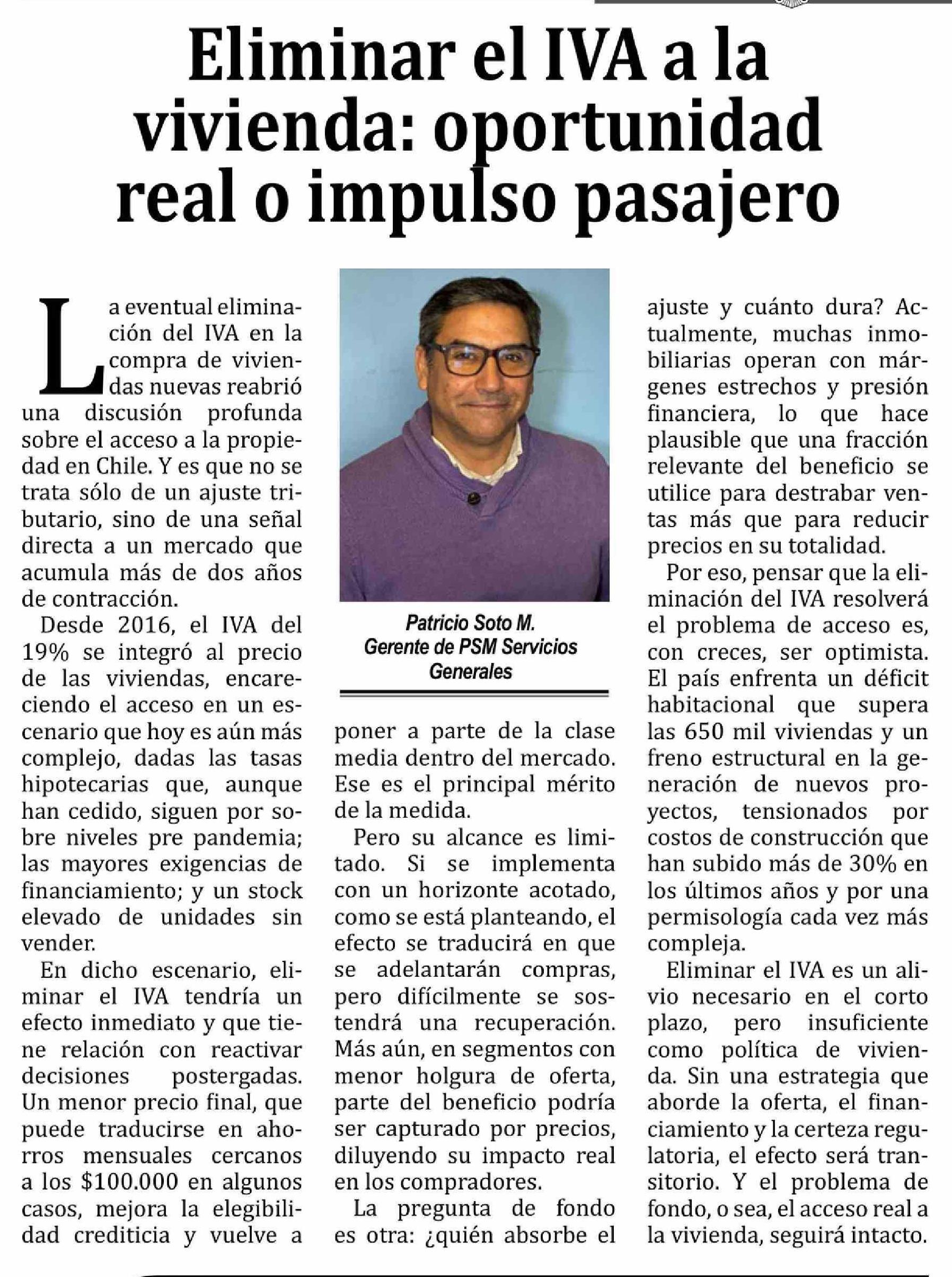 Columnas de Opinión: Eliminar el IVA a la vivienda: oportunidad real o impulso pasajero