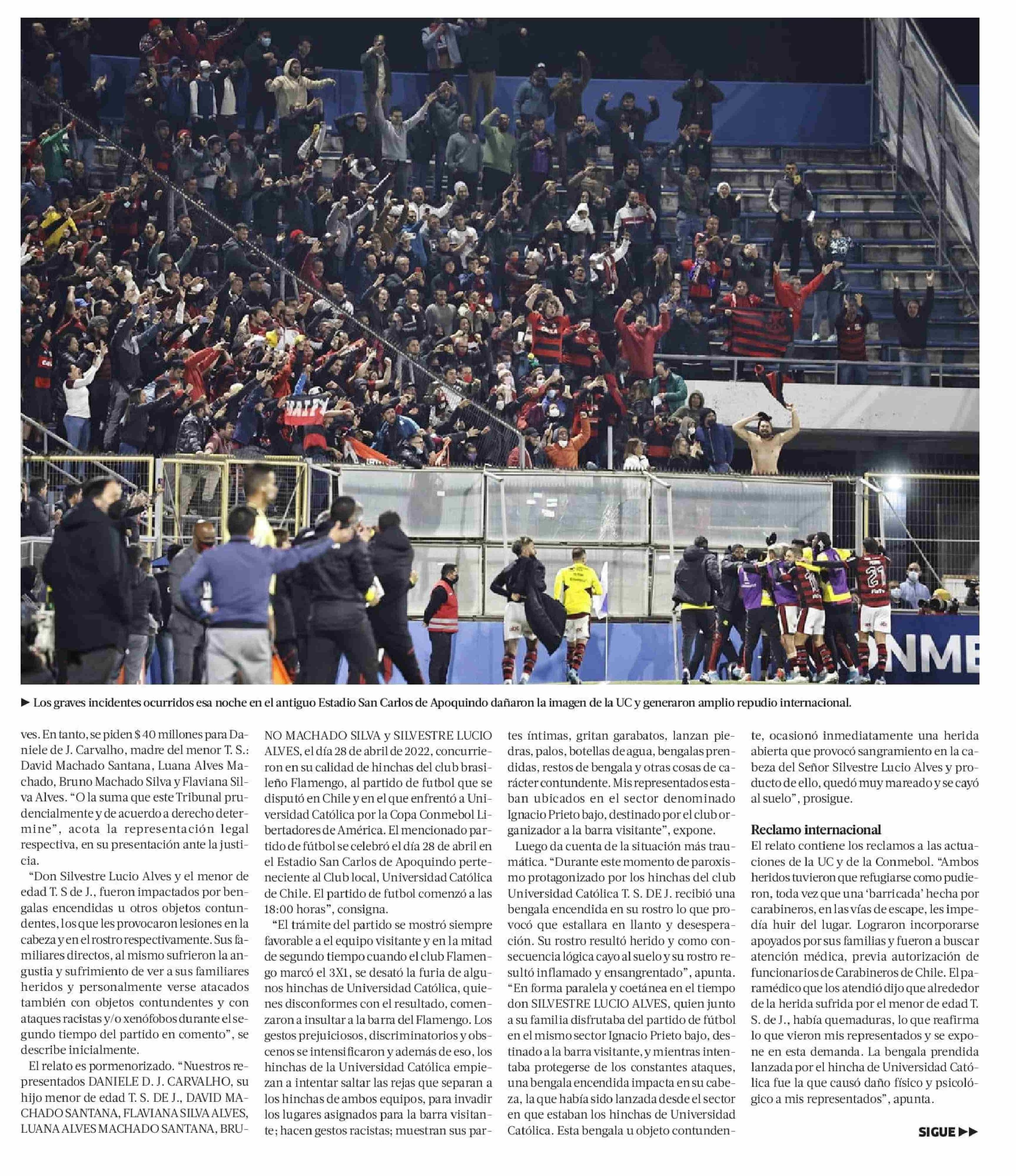 Hinchas del Flamengo agredidos con bengalas en San Carlos de Apoquindo demandan por $ 800 millones