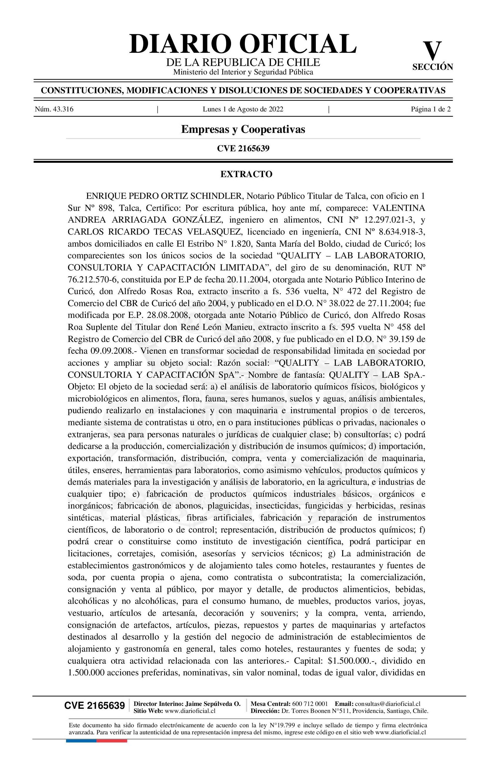 Diario Oficial Edición Electrónica (Diario Oficial de Chile - 5 Empresas Y Cooper)