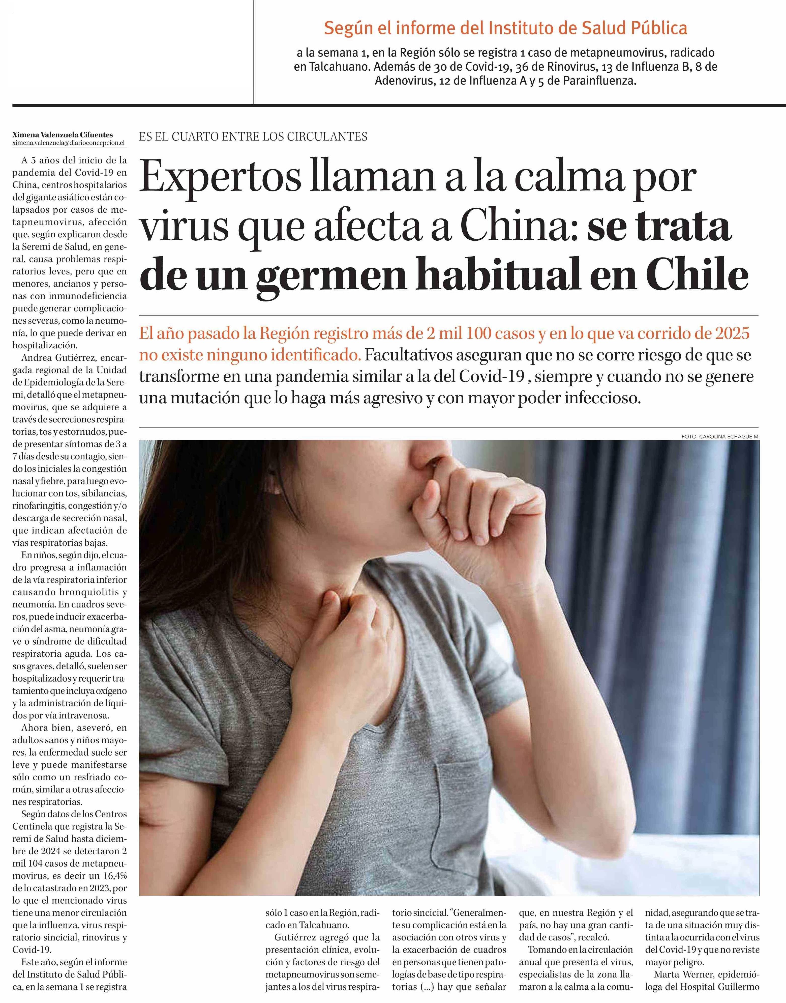 Expertos llaman a la calma por virus que afecta a China: se trata de un germen habitual en Chile