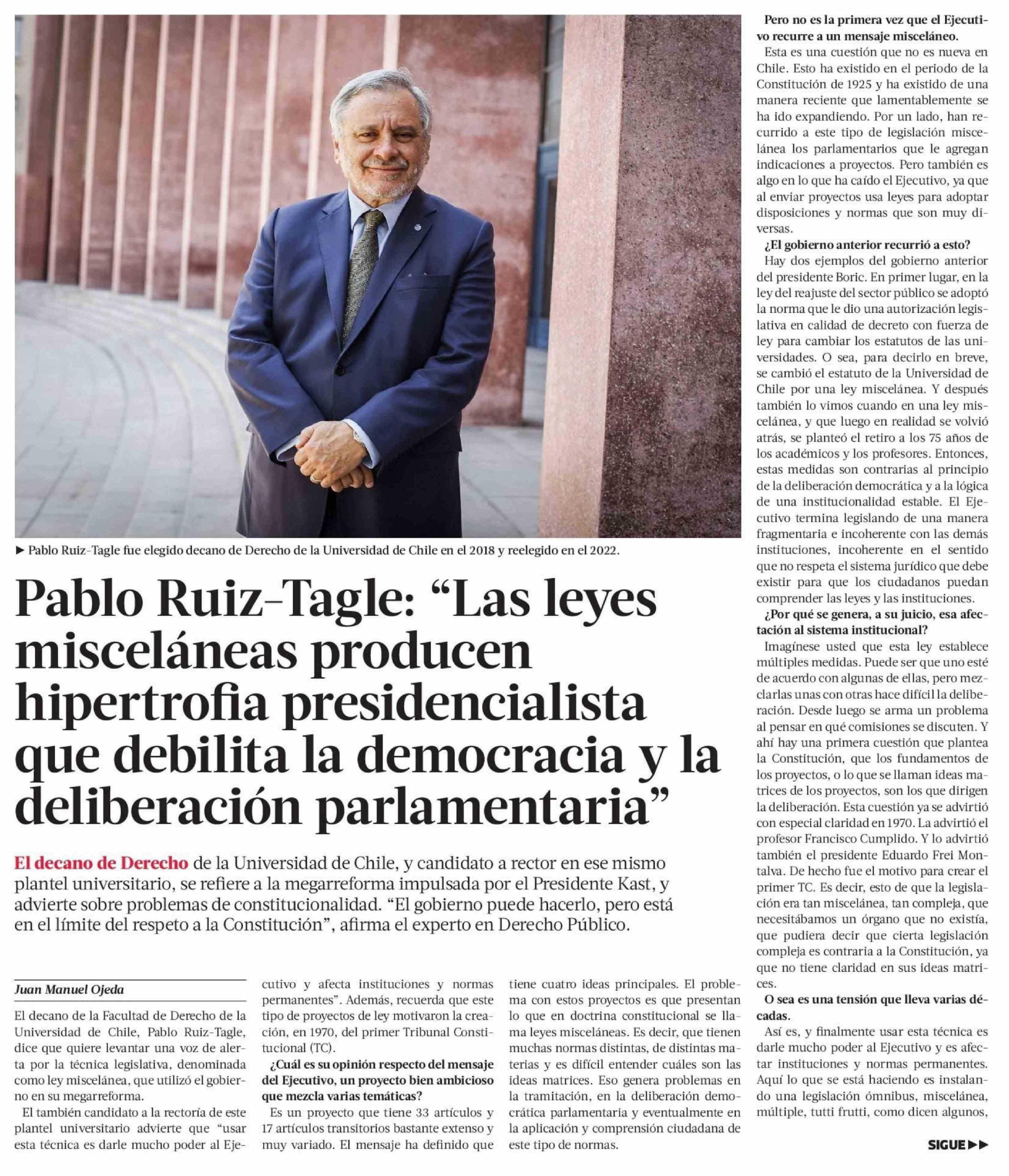 Pablo Ruiz-Tagle: "Las leyes misceláneas producen hipertrofia presidencialista que debilita la democracia y la deliberación parlamentaria"