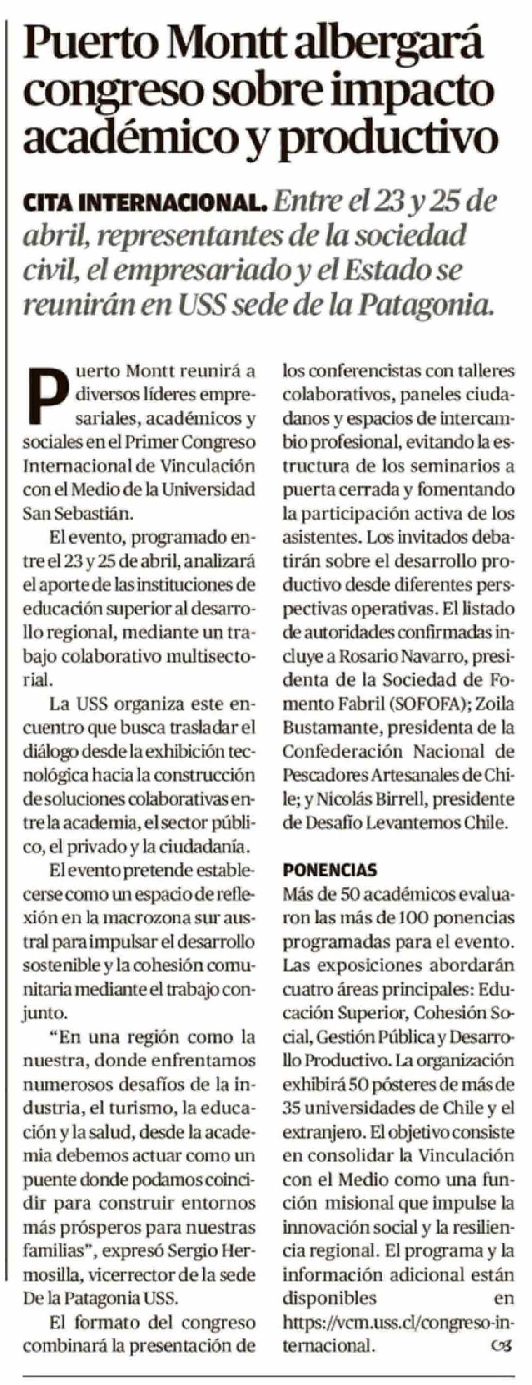 Puerto Montt albergará congreso sobre impacto académico y productivo