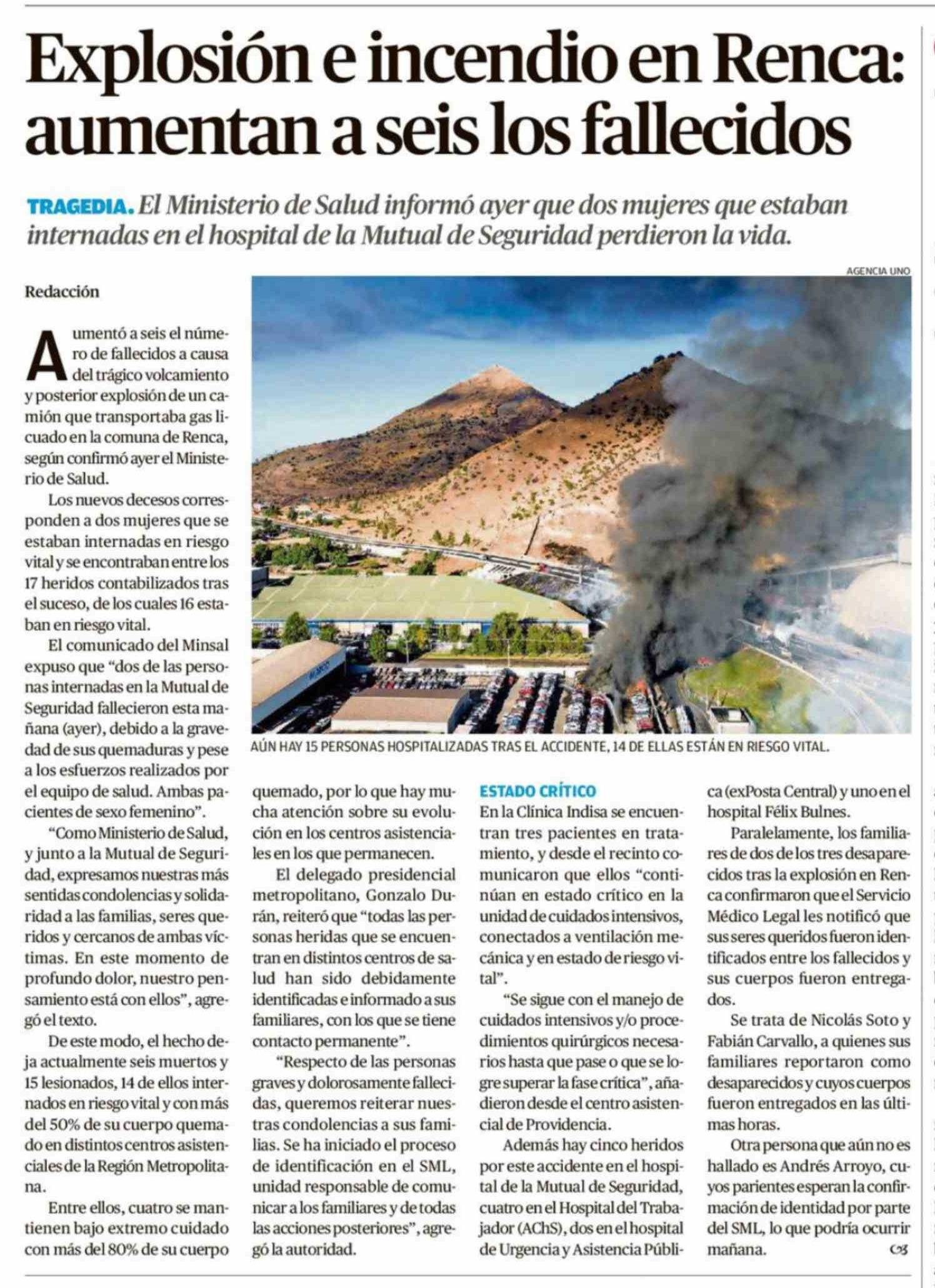 Explosión e incendio en Renca: aumentan a seis los fallecidos