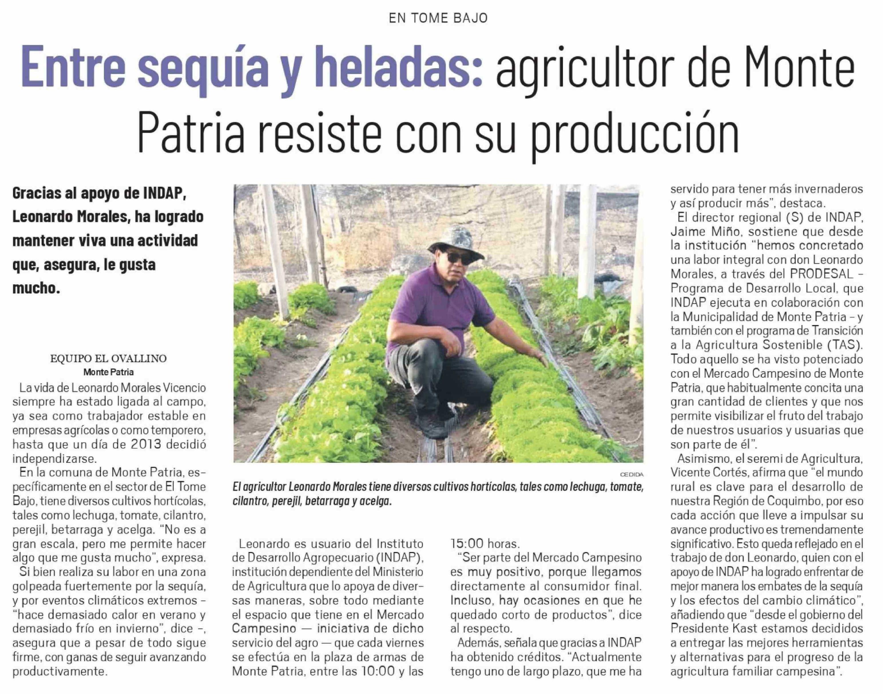 Entre sequía y heladas: agricultor de Monte Patria resiste con su producción
