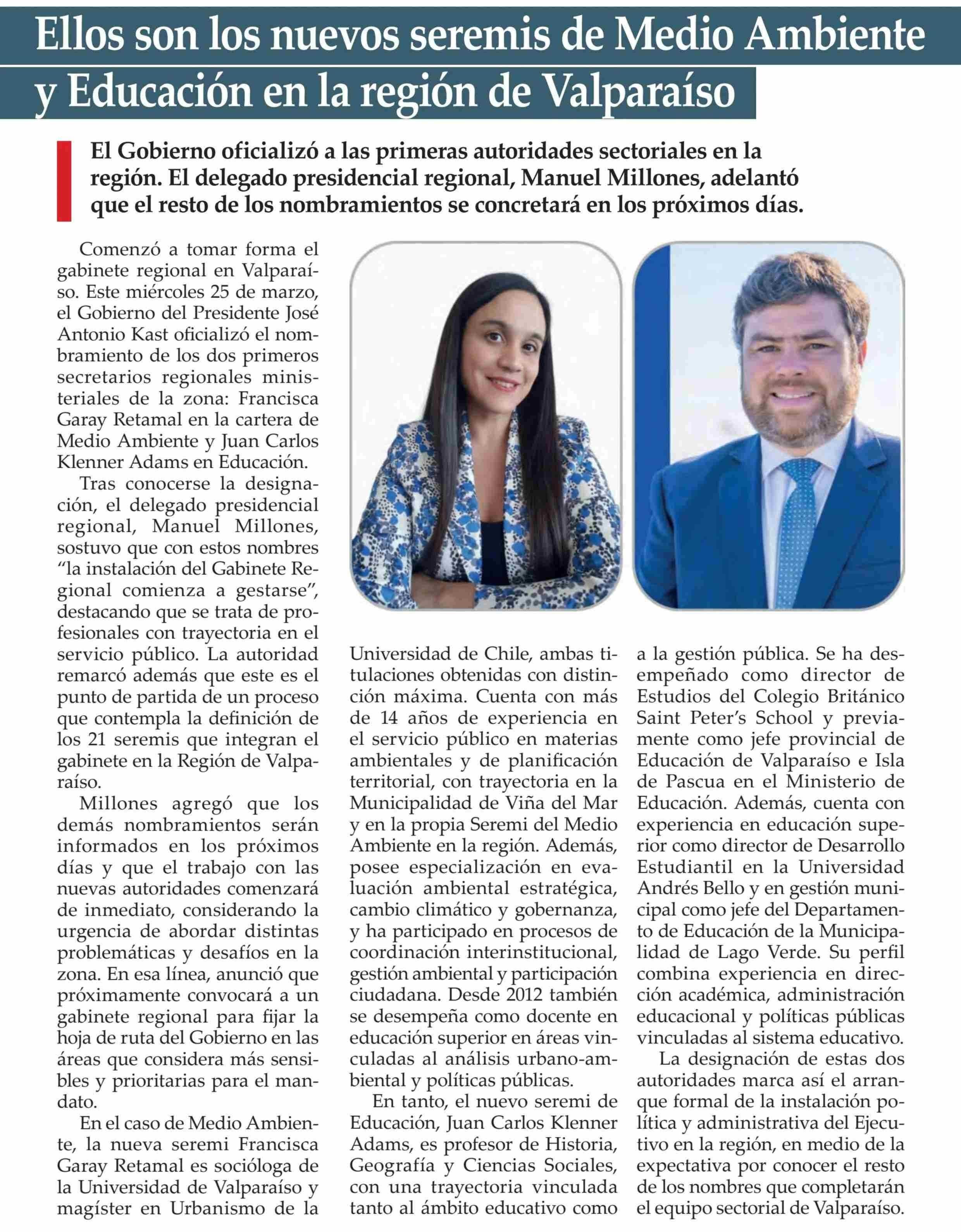 Título: Ellos son los nuevos seremis de Medio Ambiente y Educación en la región de Valparaíso