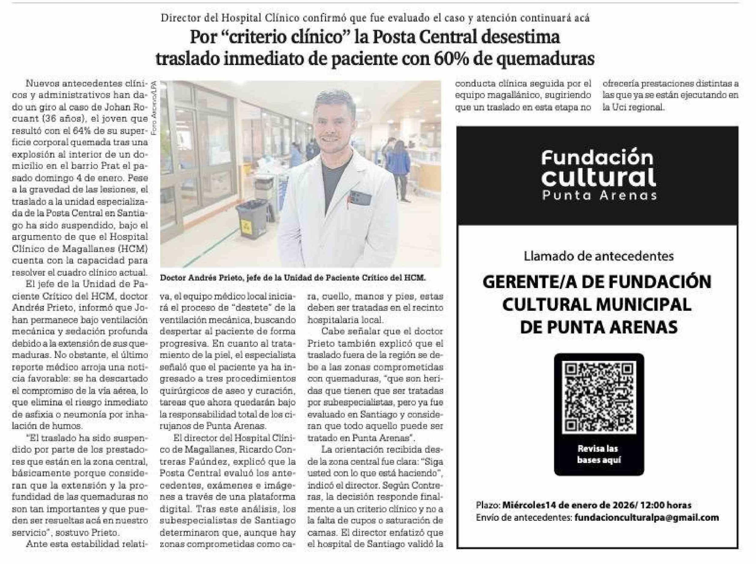 Por "criterio clínico" la Posta Central desestima traslado inmediato de paciente con 60% de quemaduras