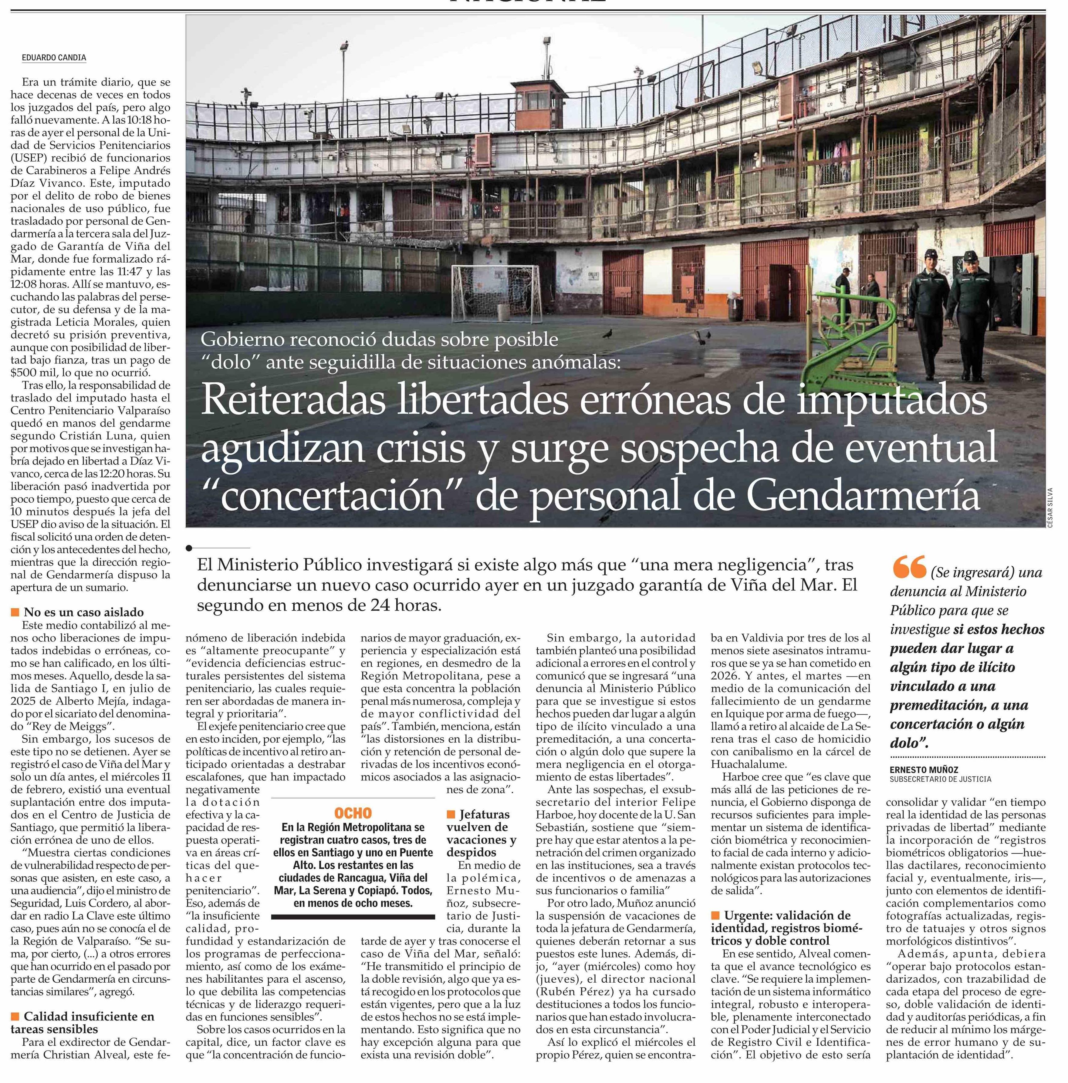 Reiteradas libertades erróneas de imputados agudizan crisis y surge sospecha de eventual “concertación” de personal de Gendarmería